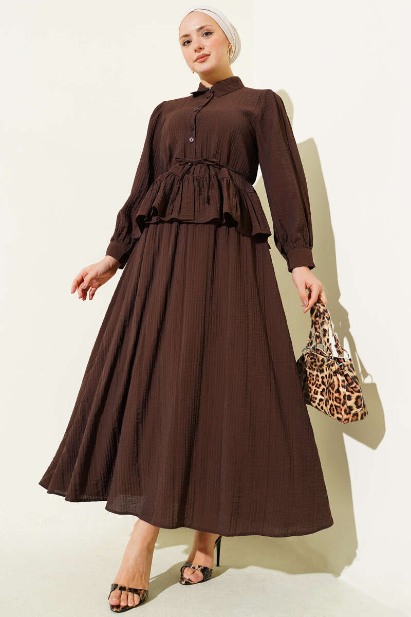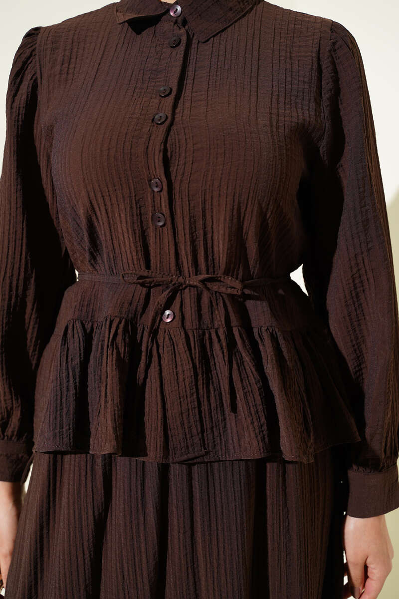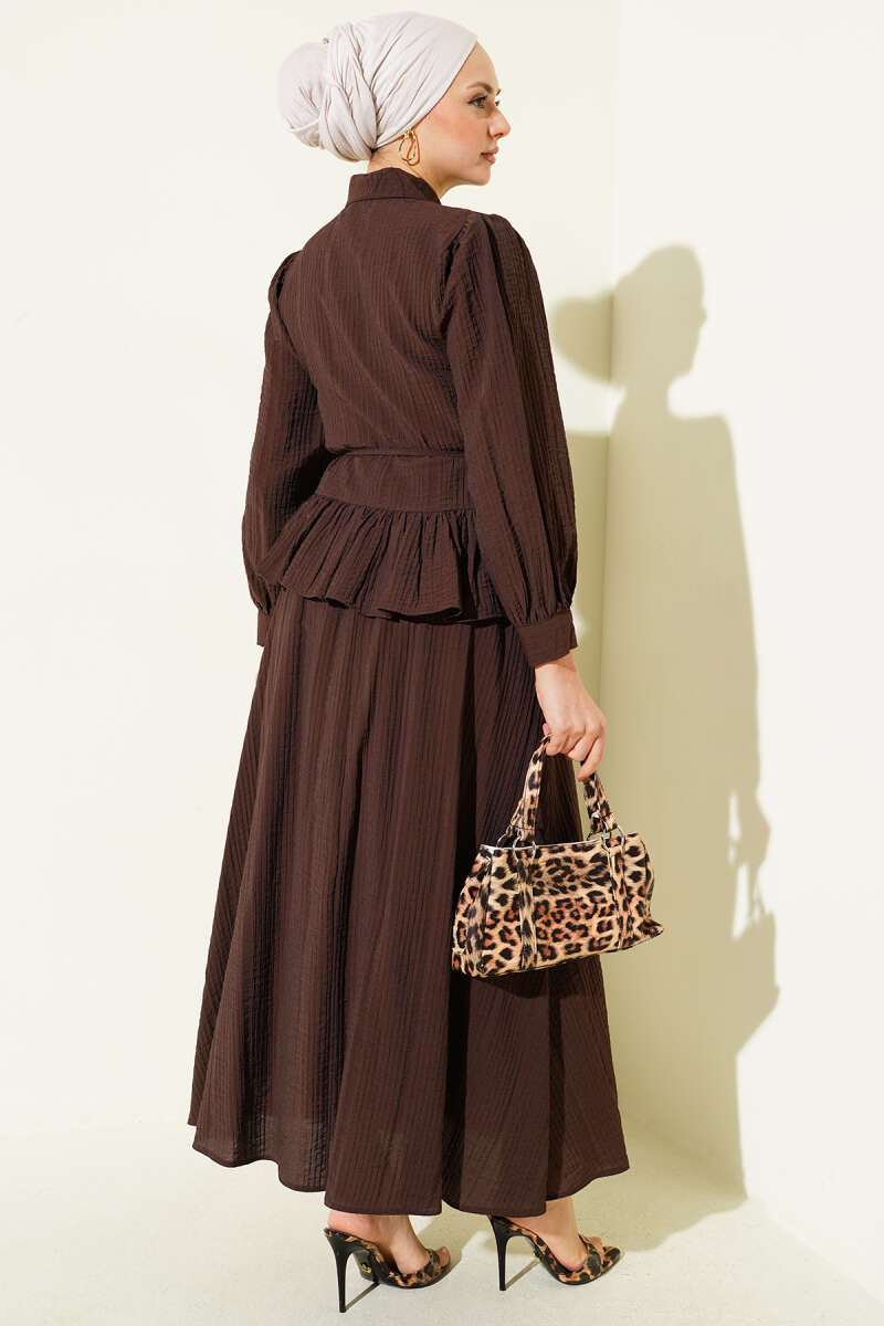 Bel Tünelli Güpür Parçalı İkili Takım Kahve