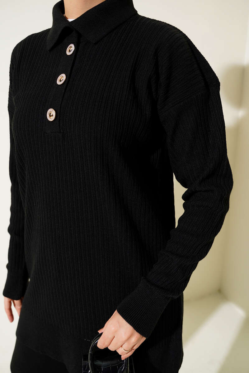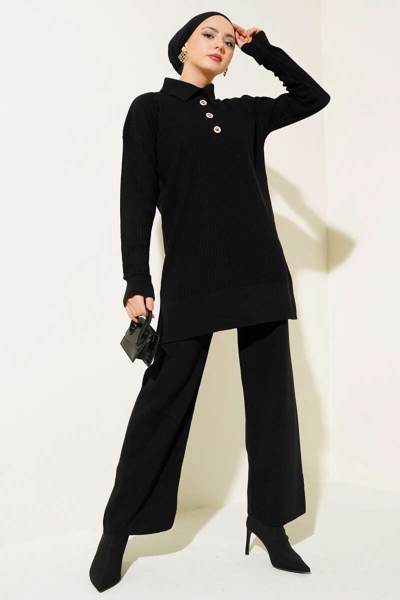 Dikiş Detaylı Basic Triko İkili Takım Siyah