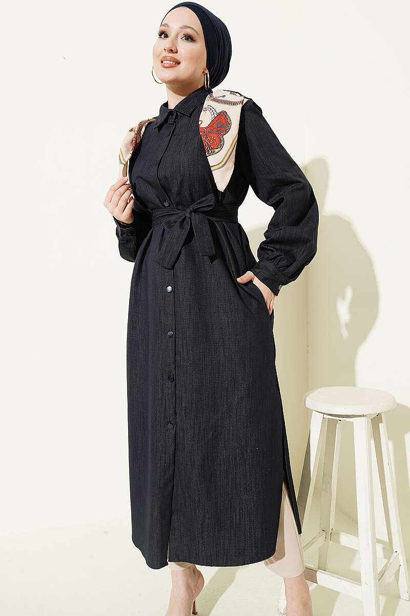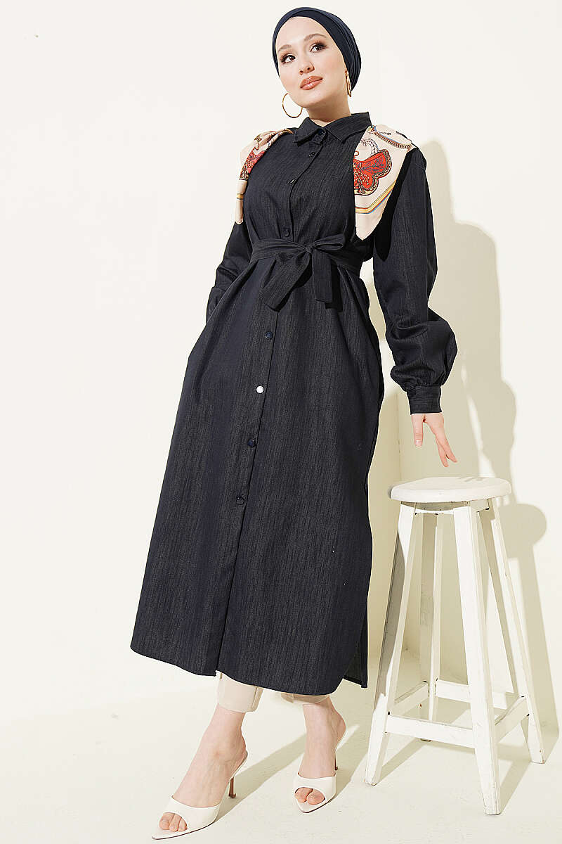 Bilek Ribanalı Düğmeli Kot Tunik Kot