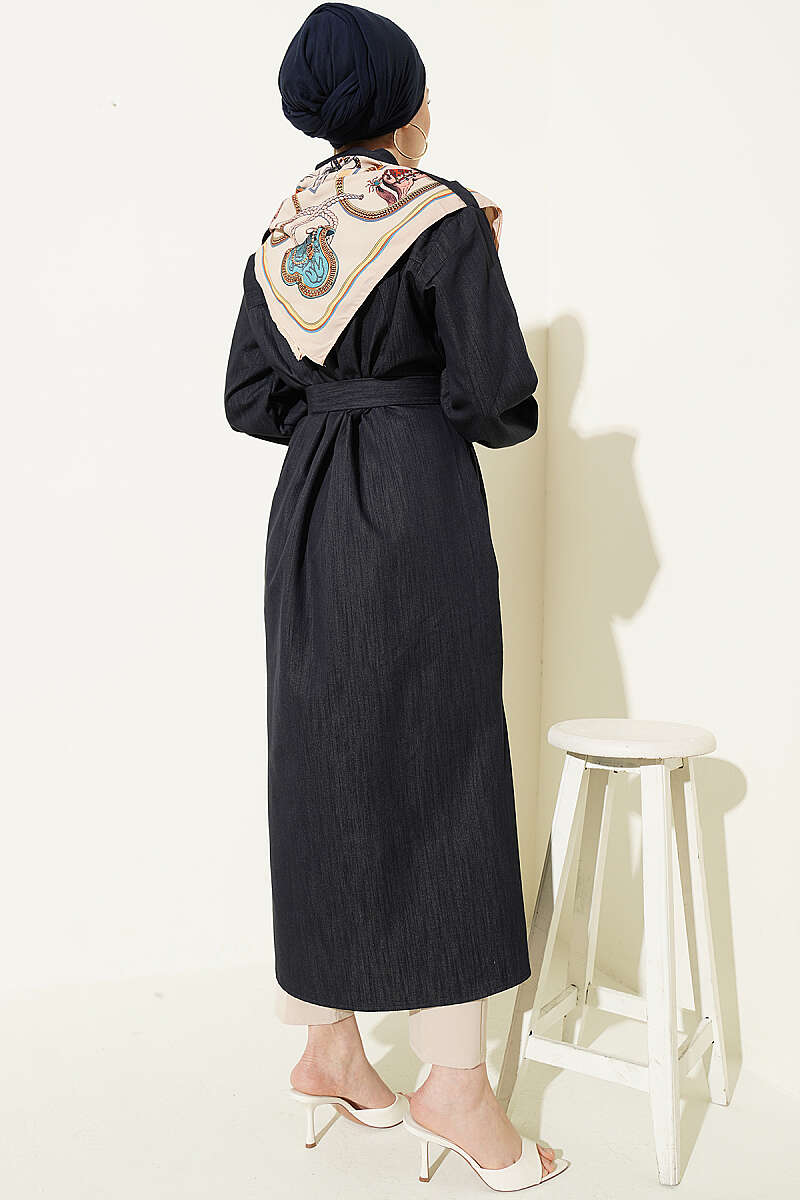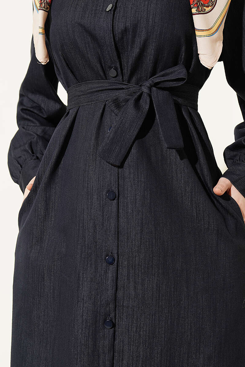 Düğmeli Fularlı Uzun Tunik Lacivert