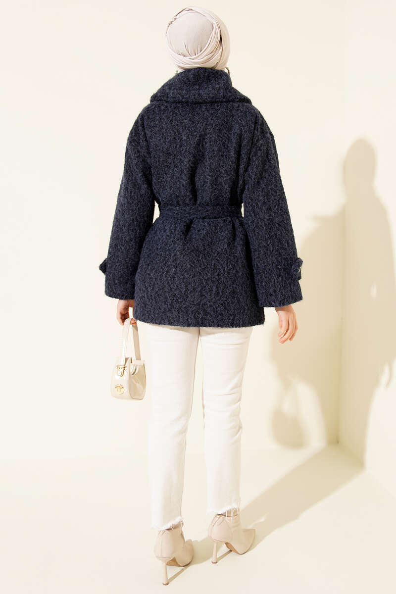 Retro Desen Kapitone Kısa Ceket Lacivert