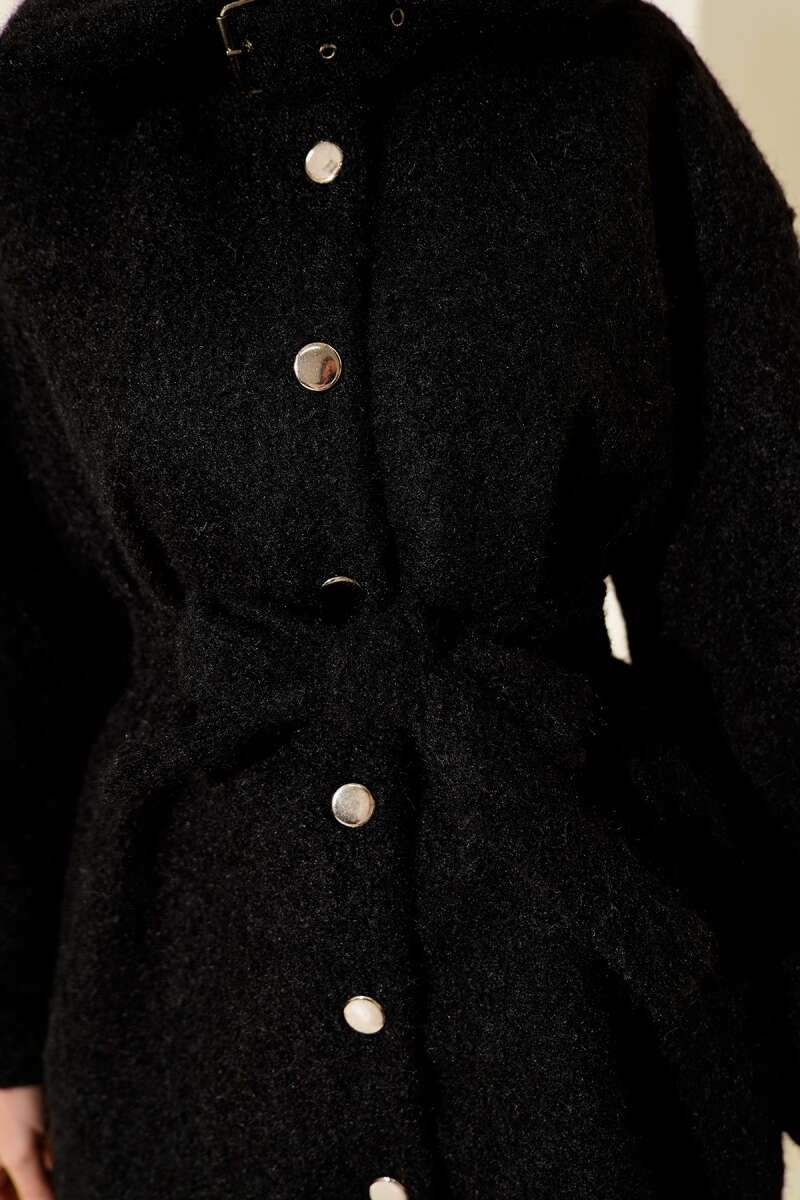 Düğmeli Gömlek Yaka Keçe Ceket Taş