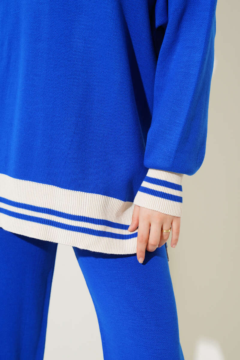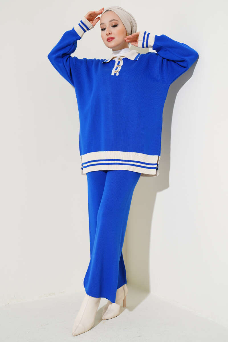 Balon Kol Balıkçı Yaka Triko İkili Takım Lacivert