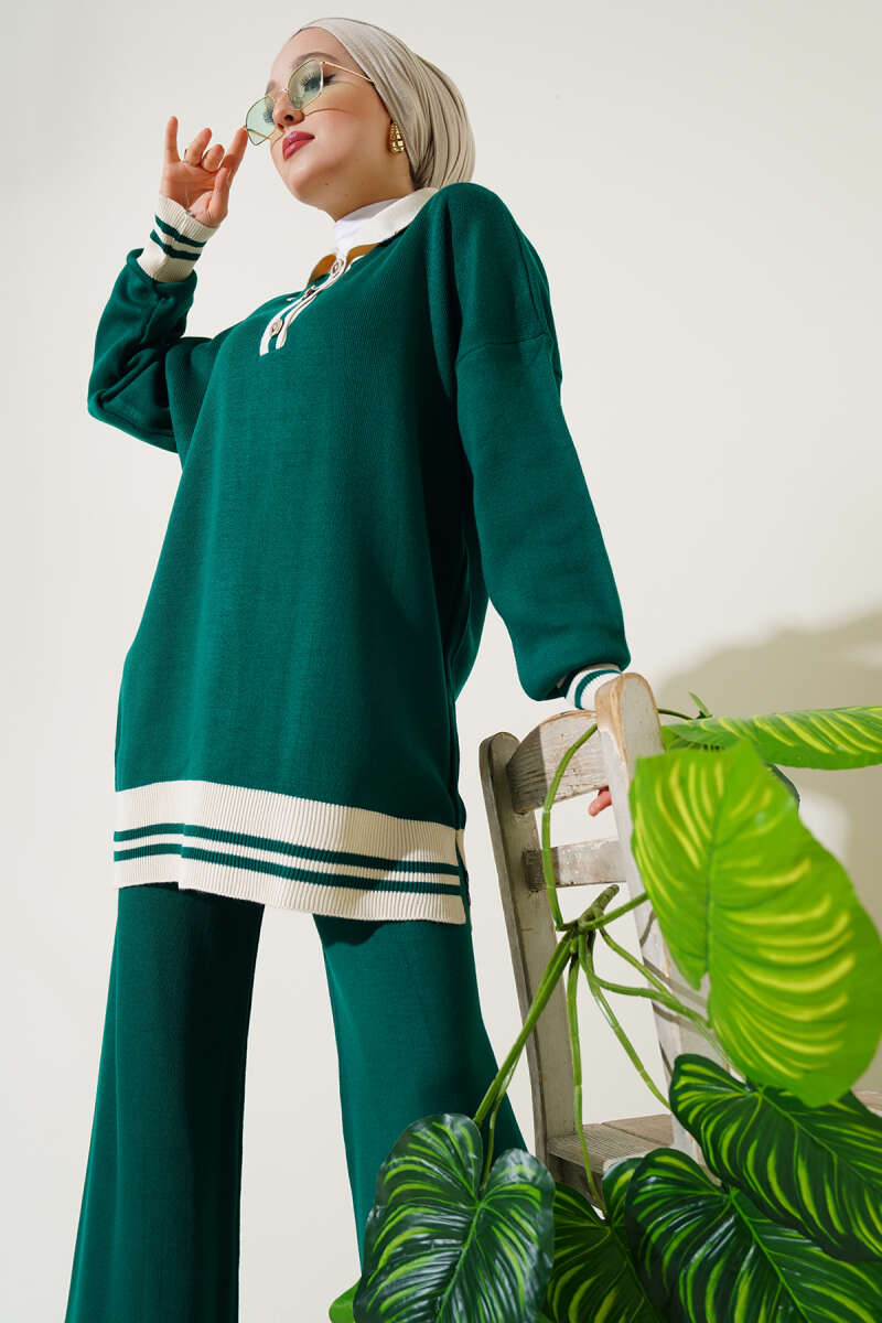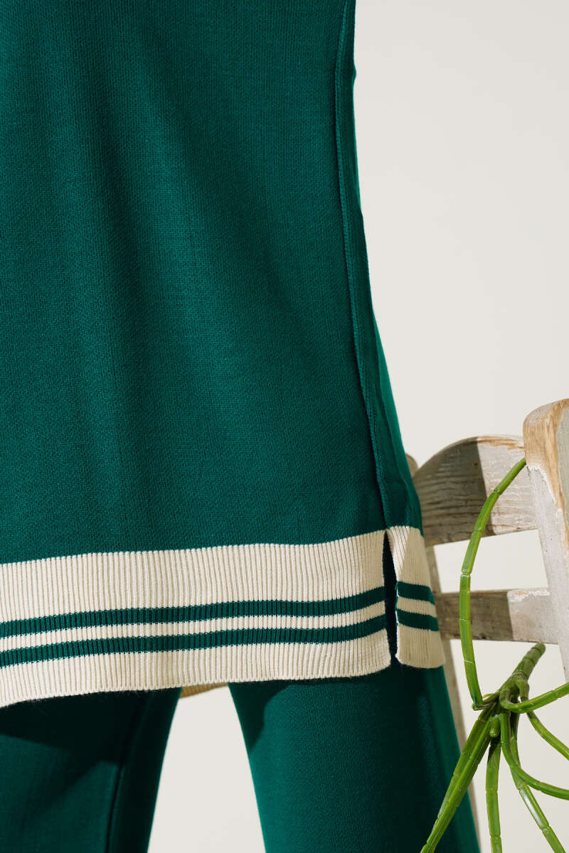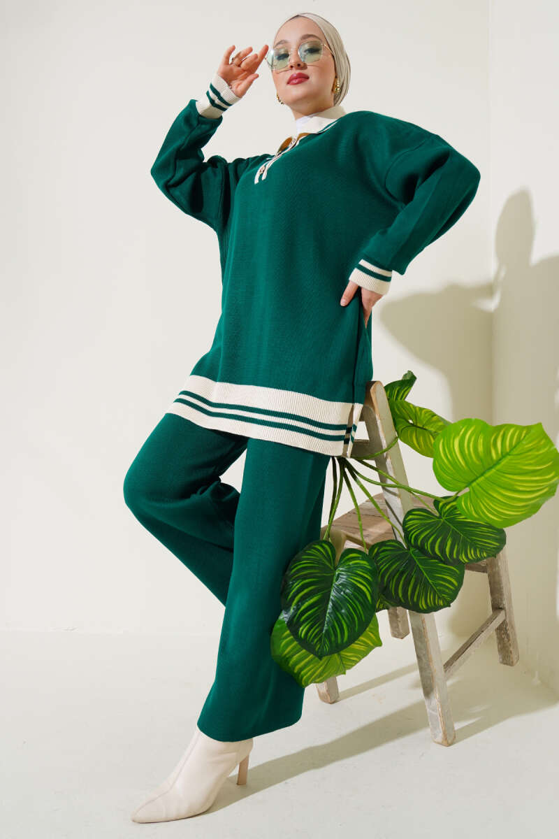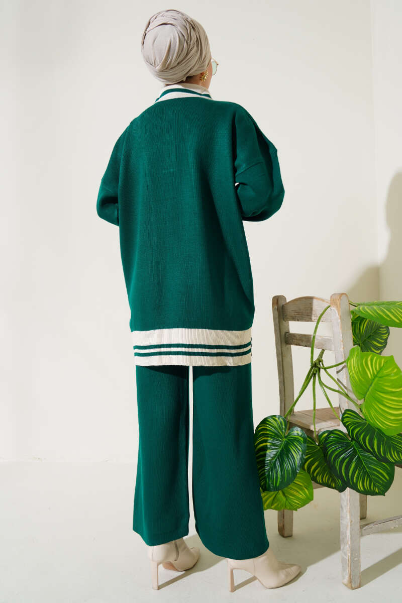 Taşlı Baklava Desen Triko İkili Takım Zümrüt