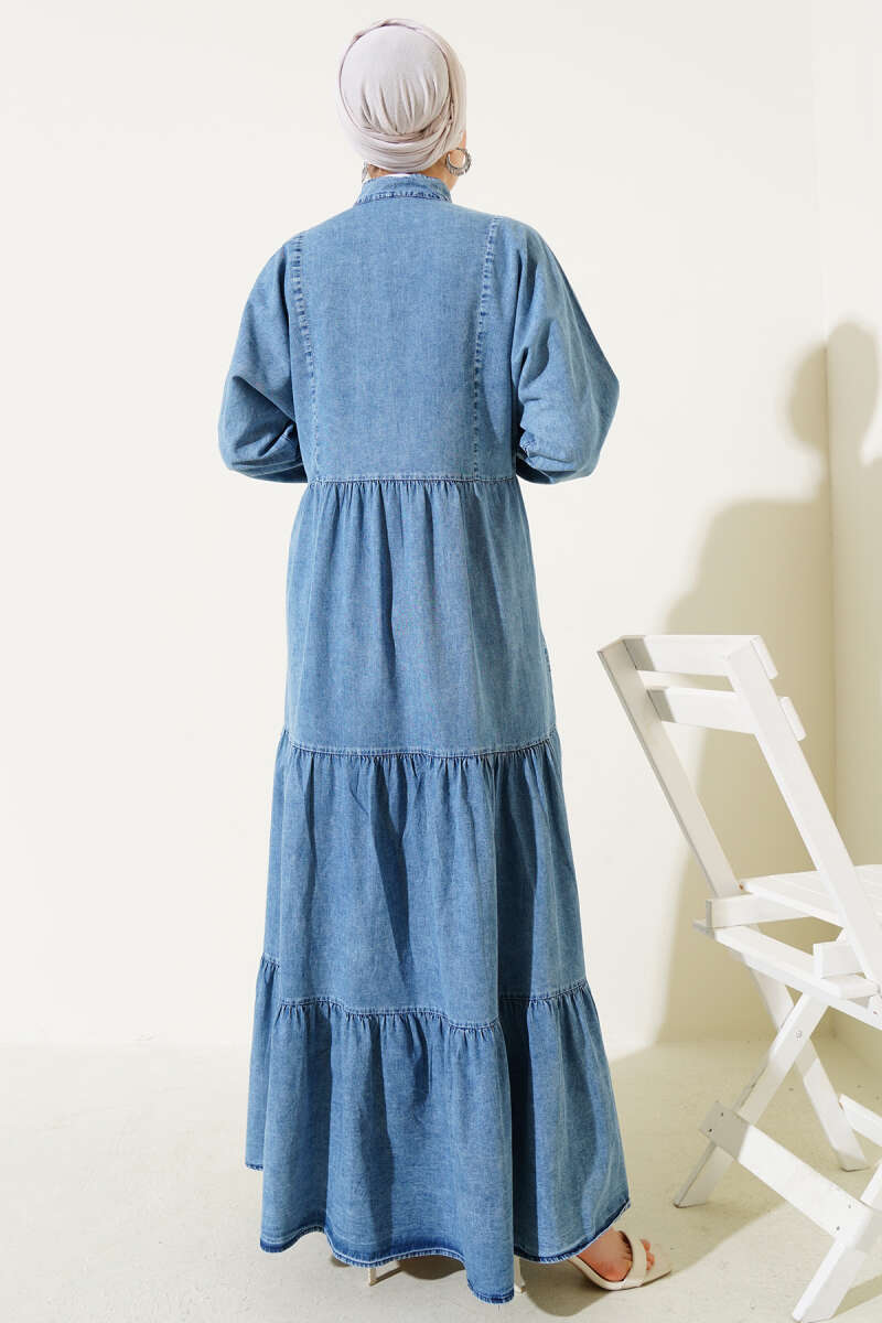 Yarım Yaka Fermuarlı Scuba Elbise Lacivert