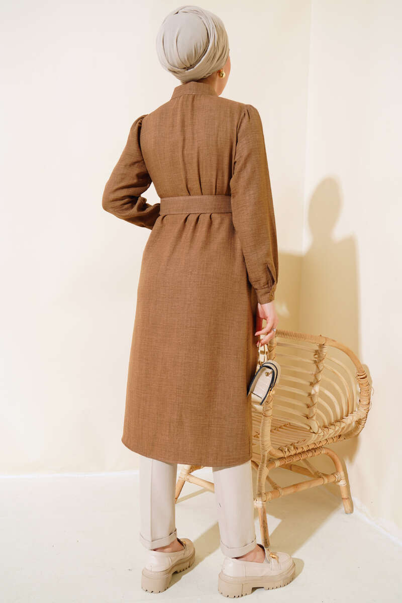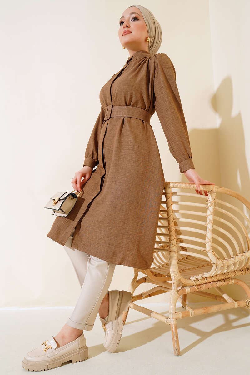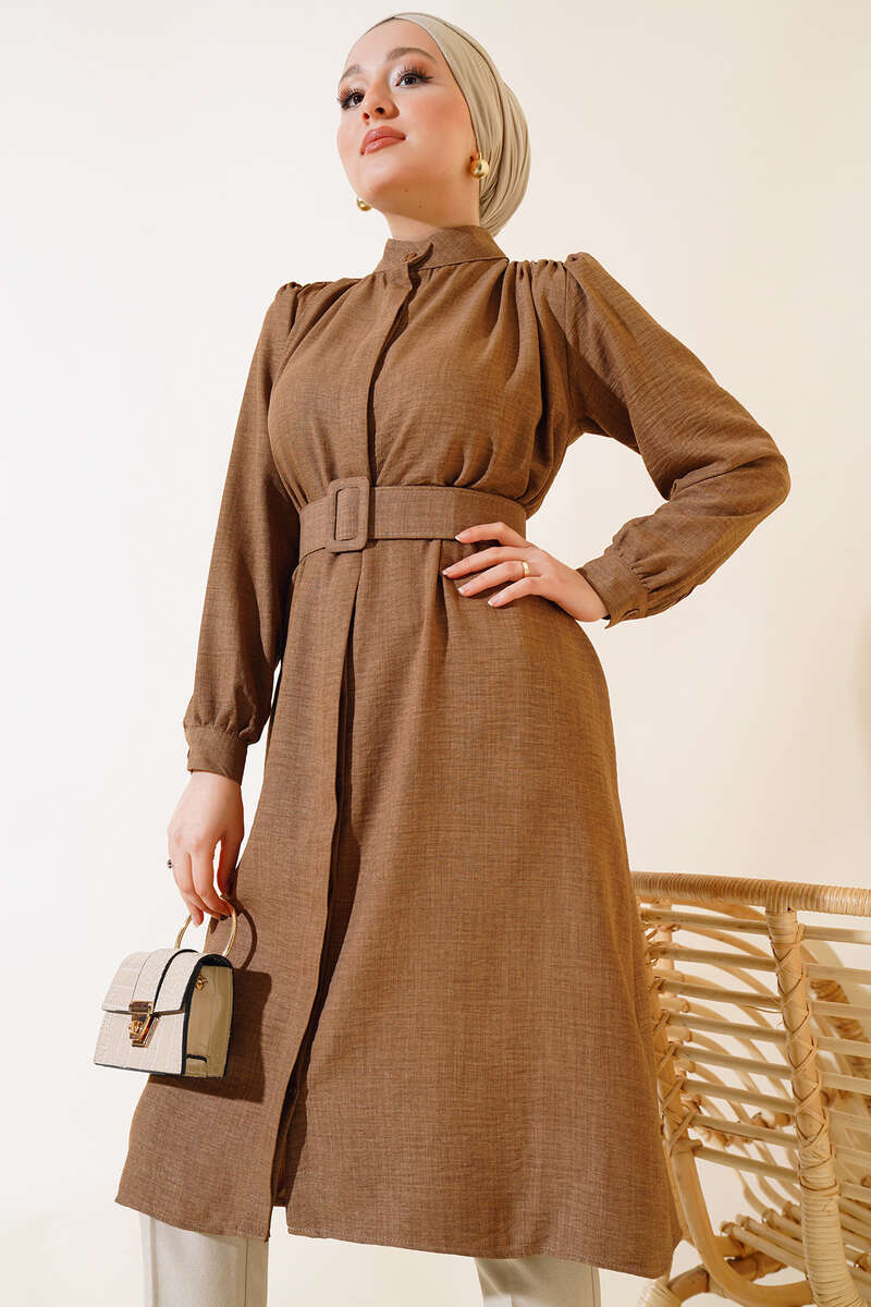 Düğmeli Hakim Yaka Tunik Vizon
