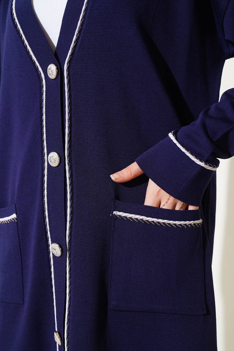 Balıkçı Yaka Fitilli Triko İkili Takım Lacivert