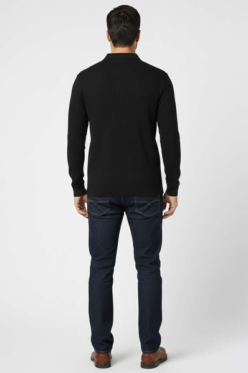 Polo Yaka Fermuarlı Basic Erkek Sweatshirt Siyah