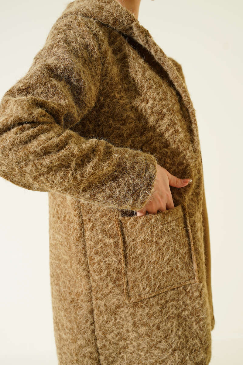 Astarı Leoparlı Kruvaze Ceket Acı Kahve