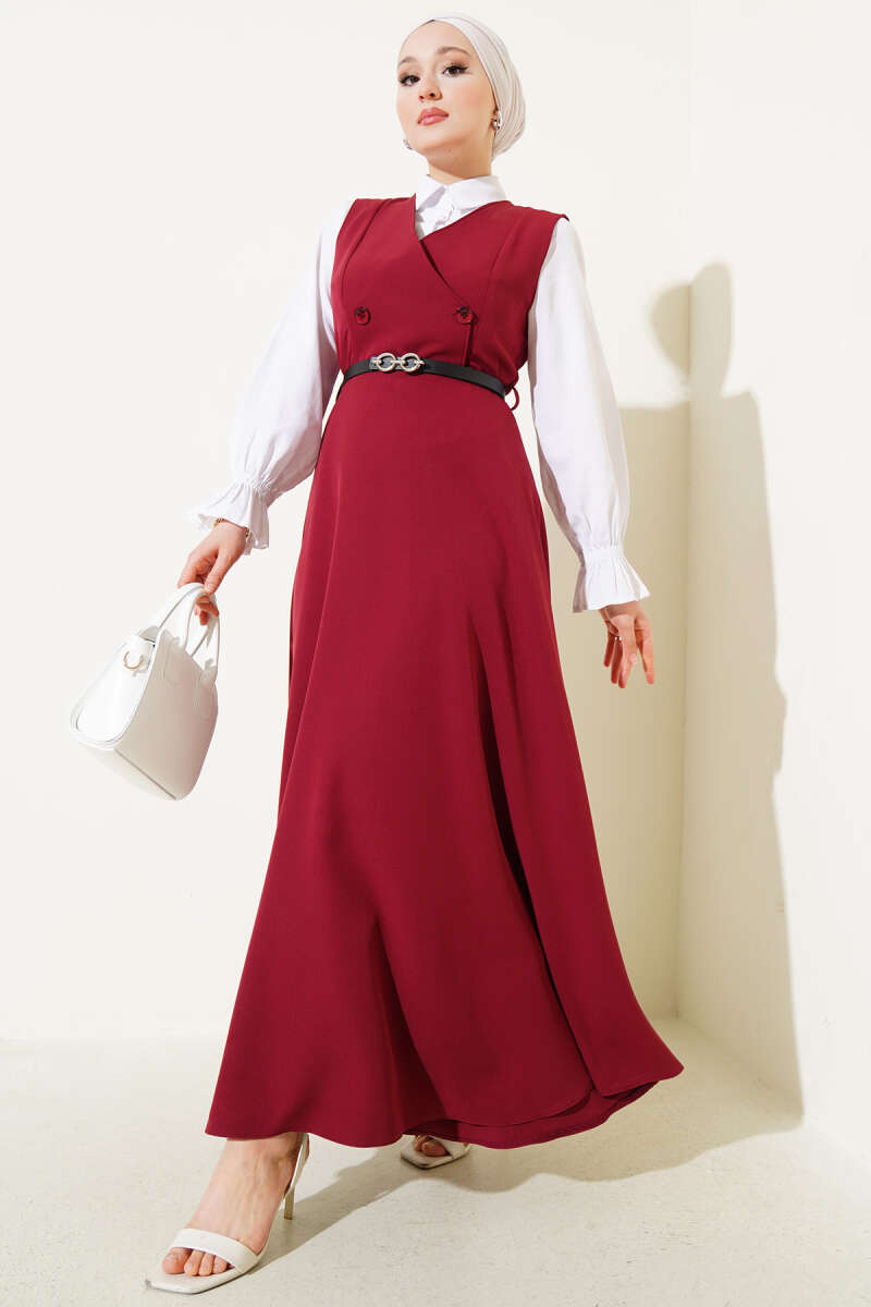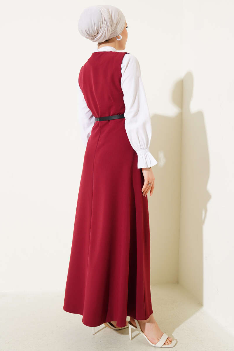 Pelerin Detaylı Pileli Triko Elbise Bordo