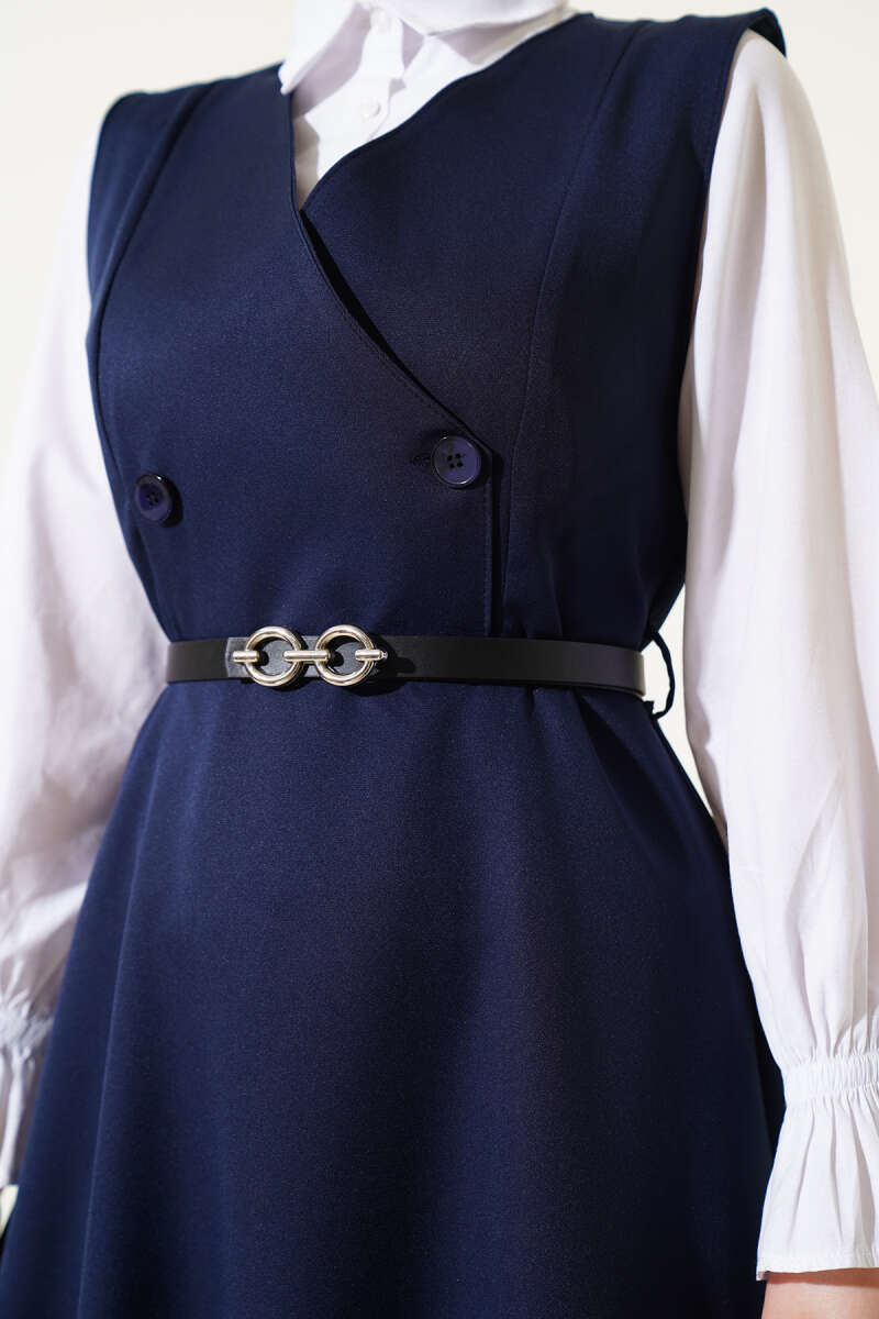 Saç Örgü Kabartmalı Triko Elbise Lacivert