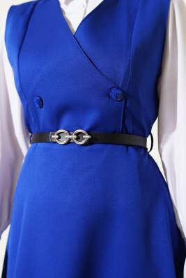 Kuşaklı Dik Fitilli Kaşe Elbise Lacivert
