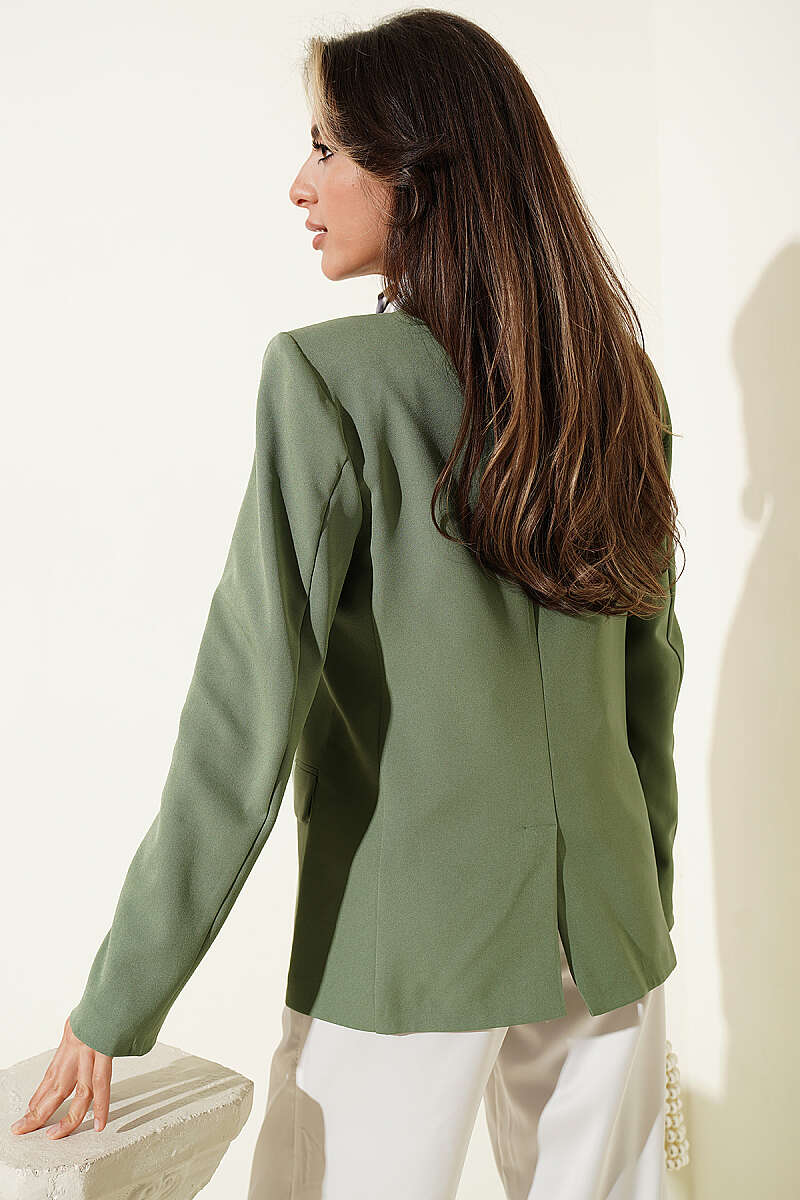 Düğmeli Kruvaze Yaka Blazer Ceket Çağla Yeşili