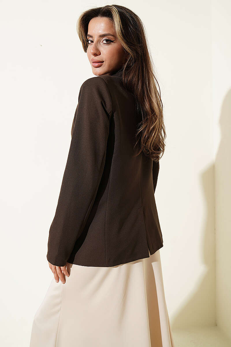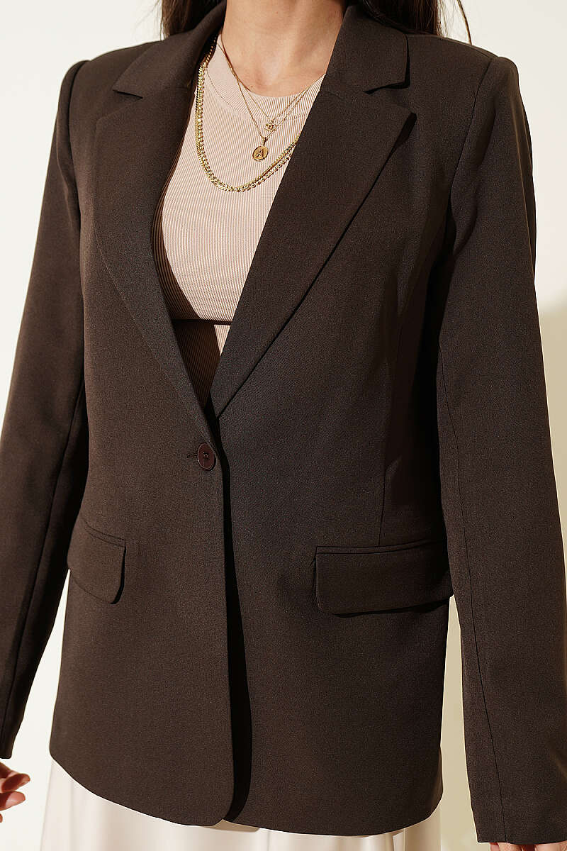 Düğmeli Kruvaze Yaka Blazer Ceket Kahve