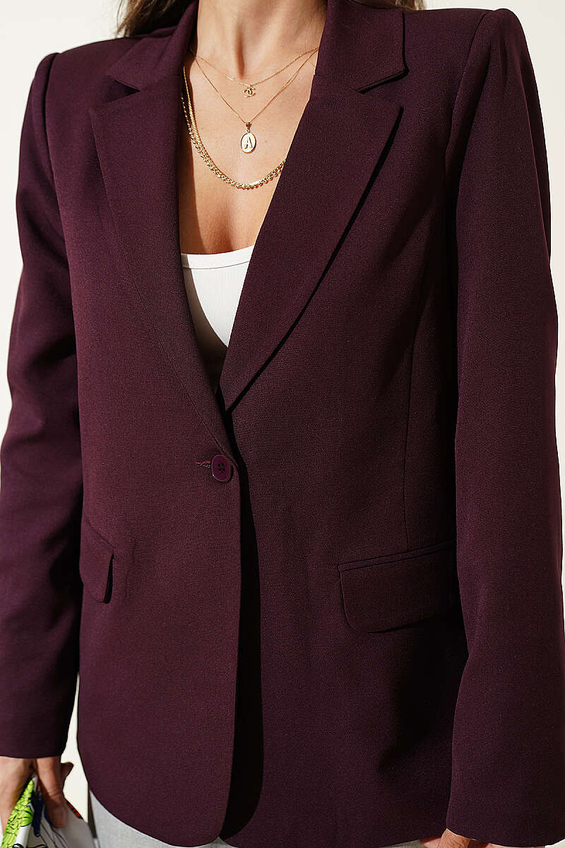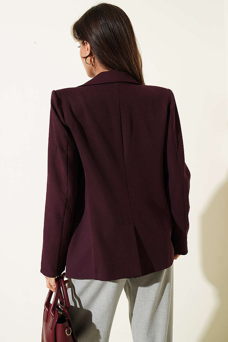 Düğmeli Kruvaze Yaka Blazer Ceket Mürdüm