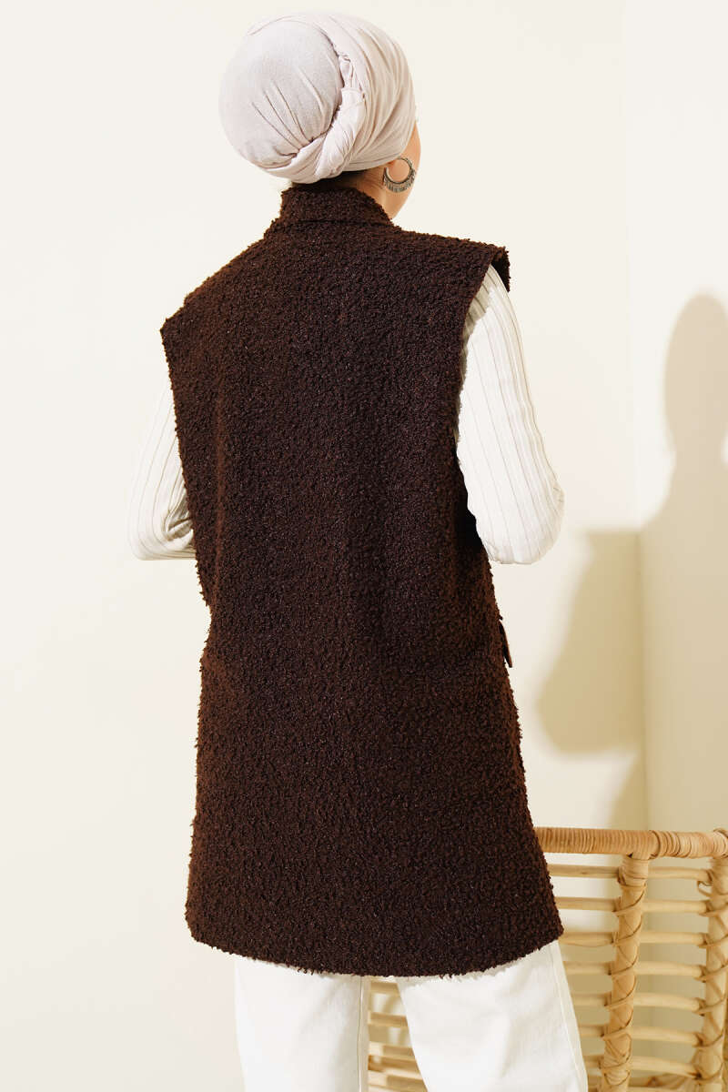 Fırfır Detaylı Düğmeli Triko Yelek Kahve