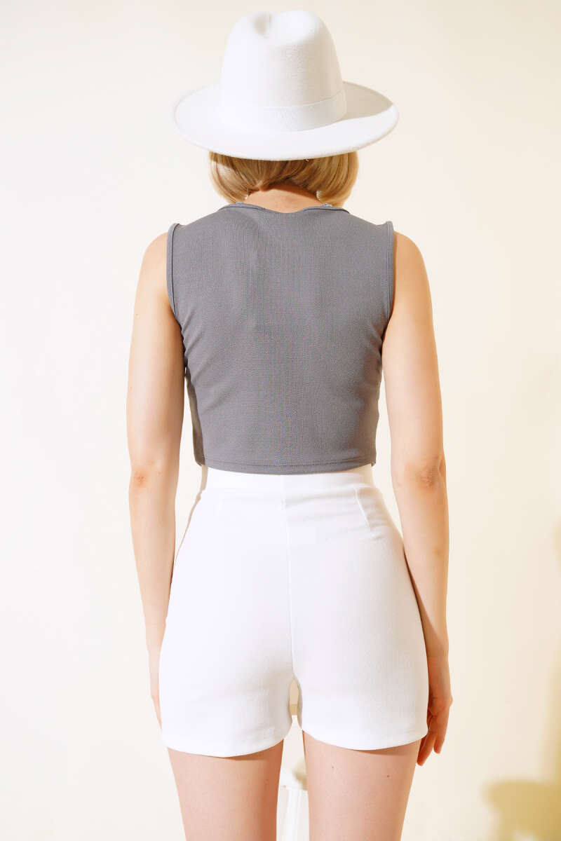 Düğmeli Kruvaze Yelek Gri