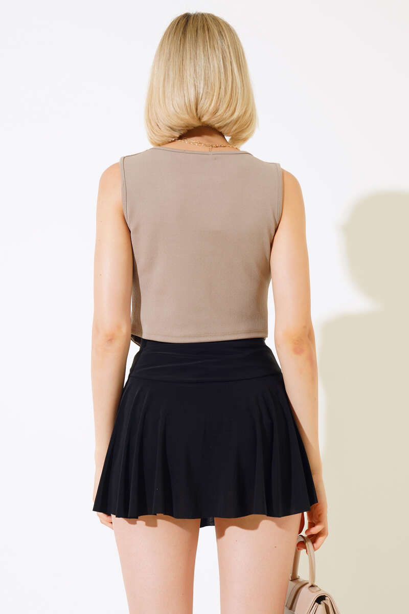 Boyundan Bağlamalı Kadife Mini Elbise Siyah