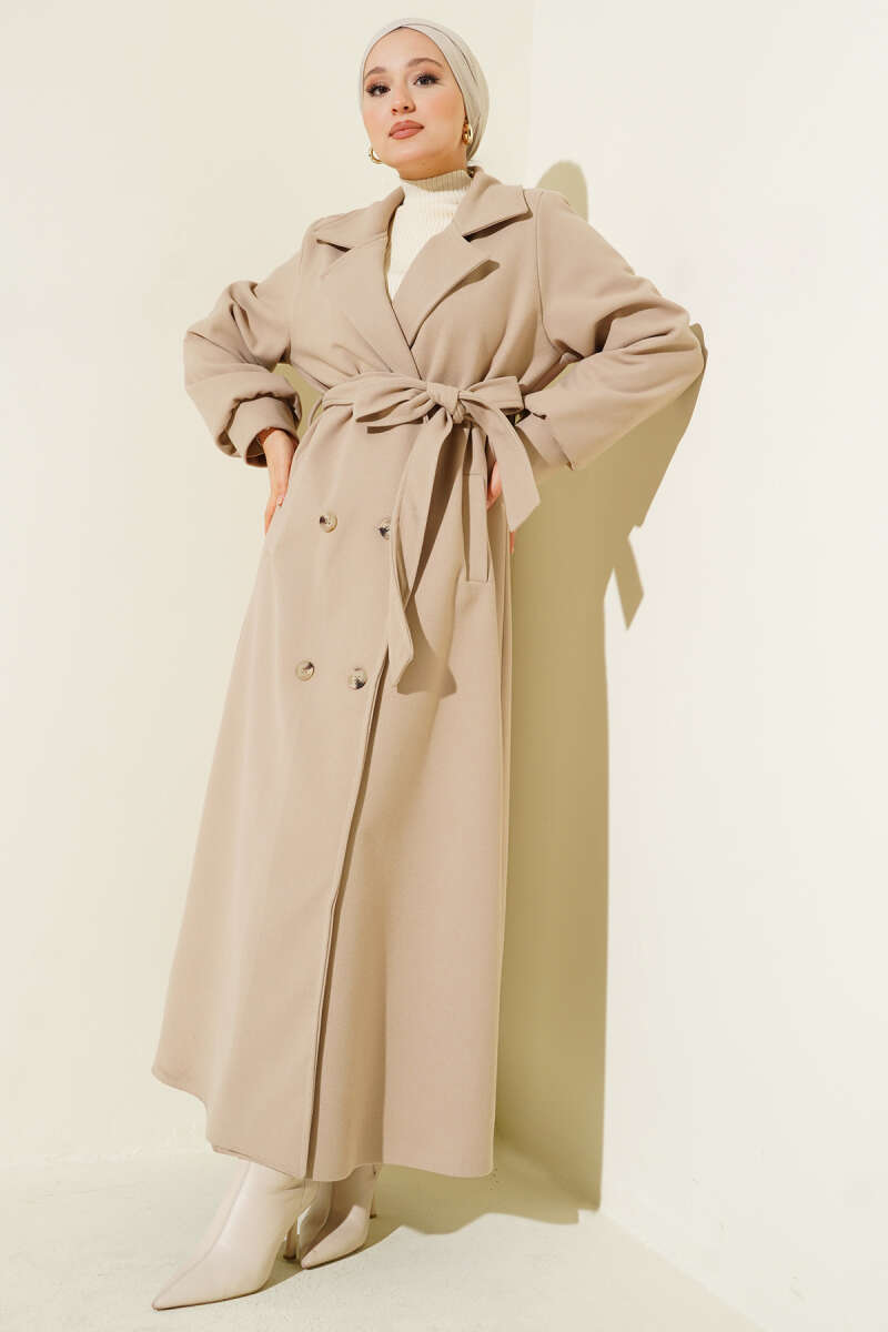 Yan Bağcıklı Kaşe Kaban Pudra