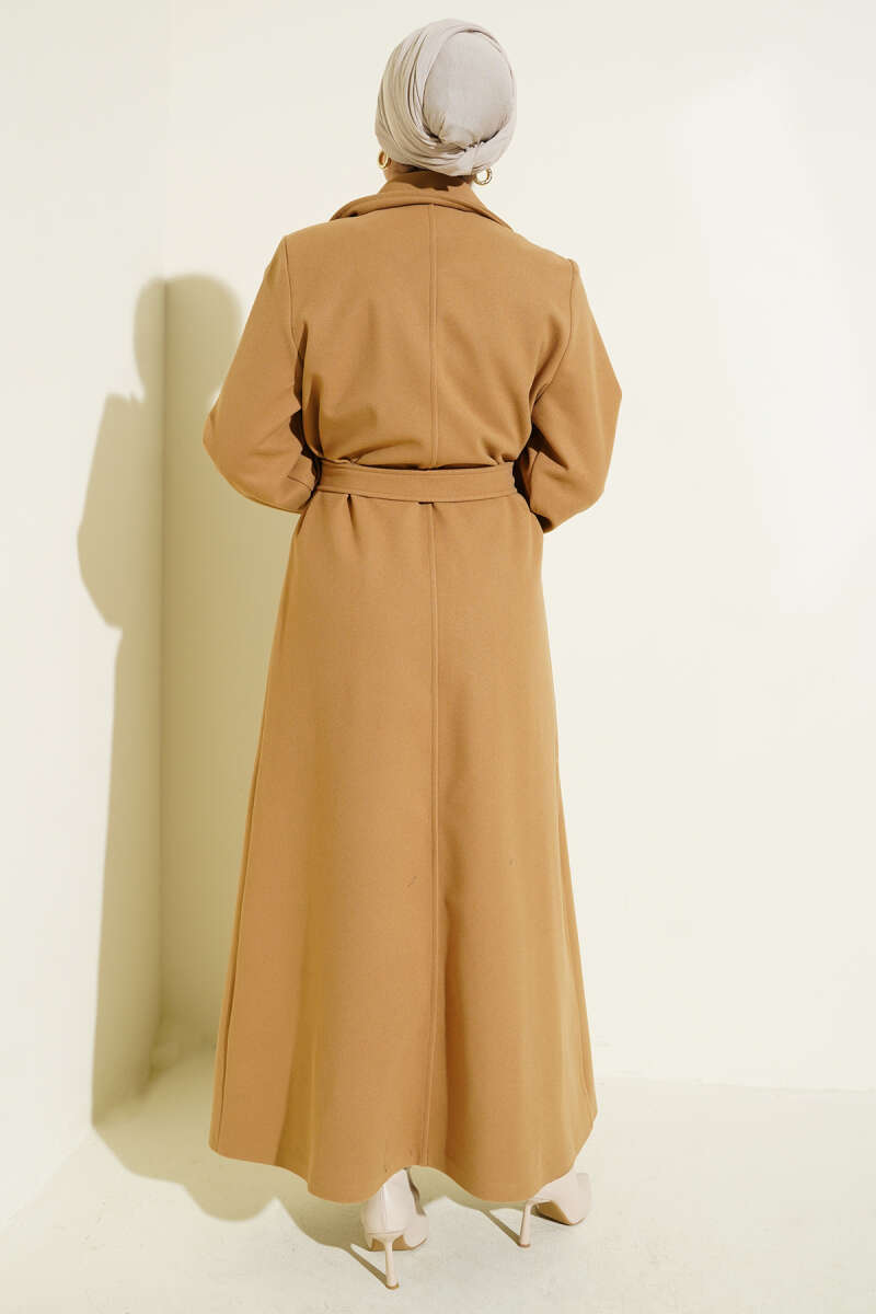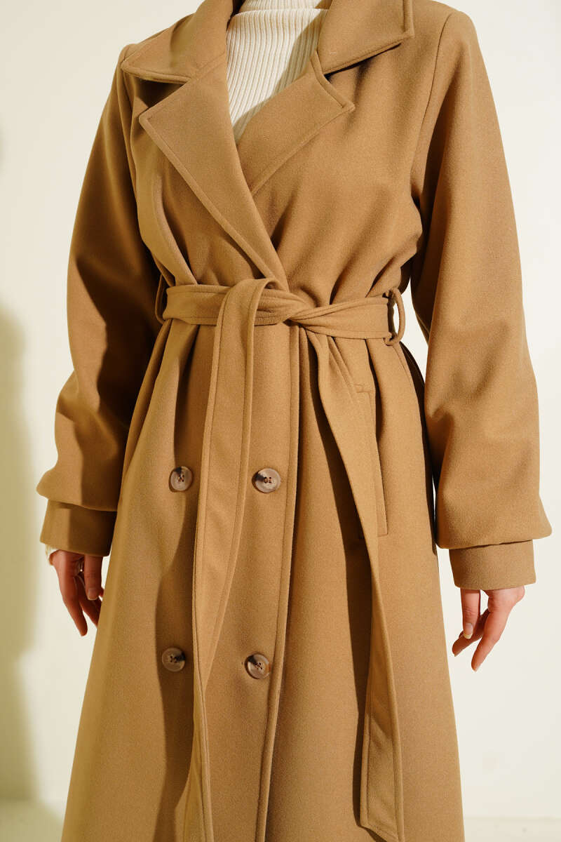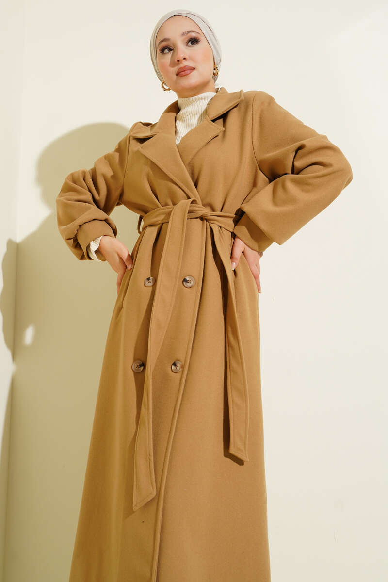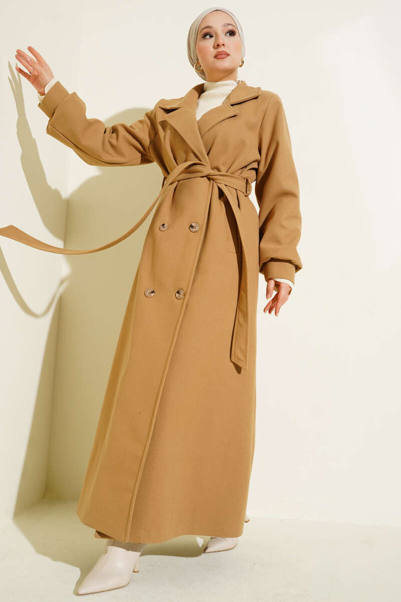 Yan Bağcıklı Kaşe Kaban Kırmızı