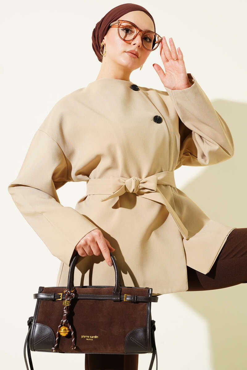 Düğmeli Kuşaklı Basic Ceket Kahve