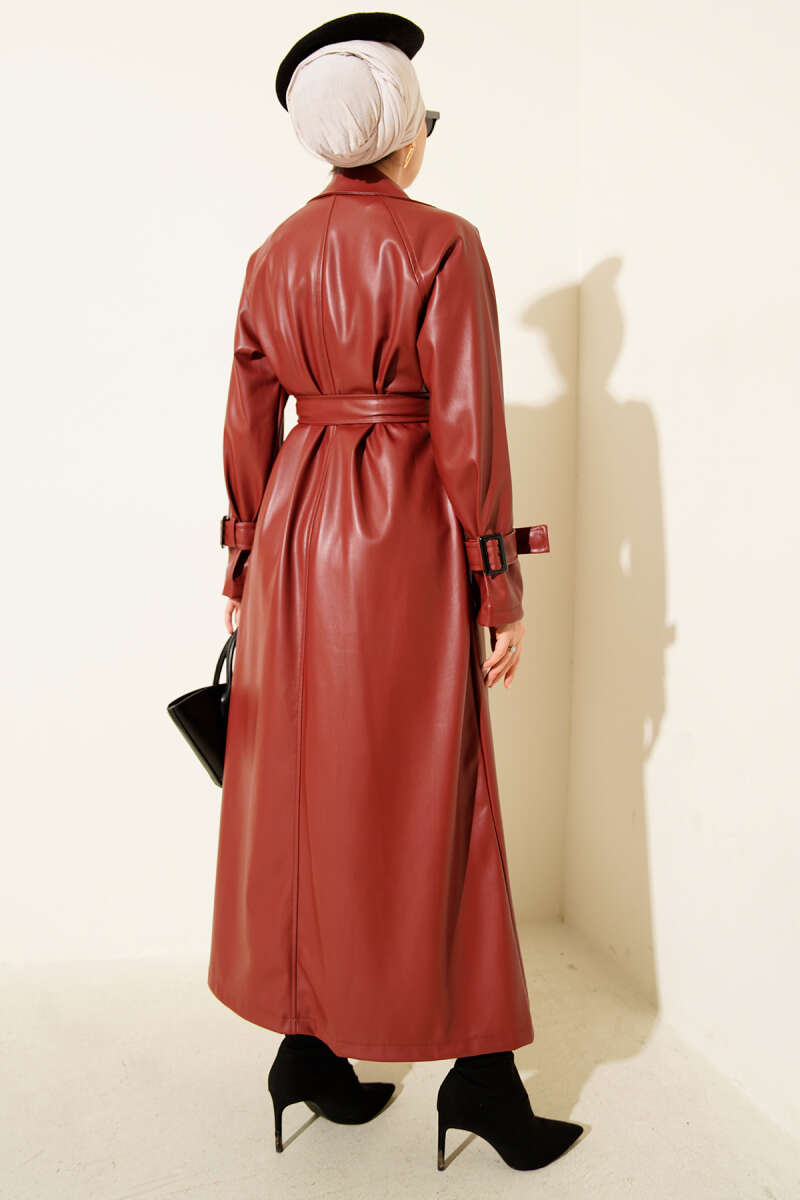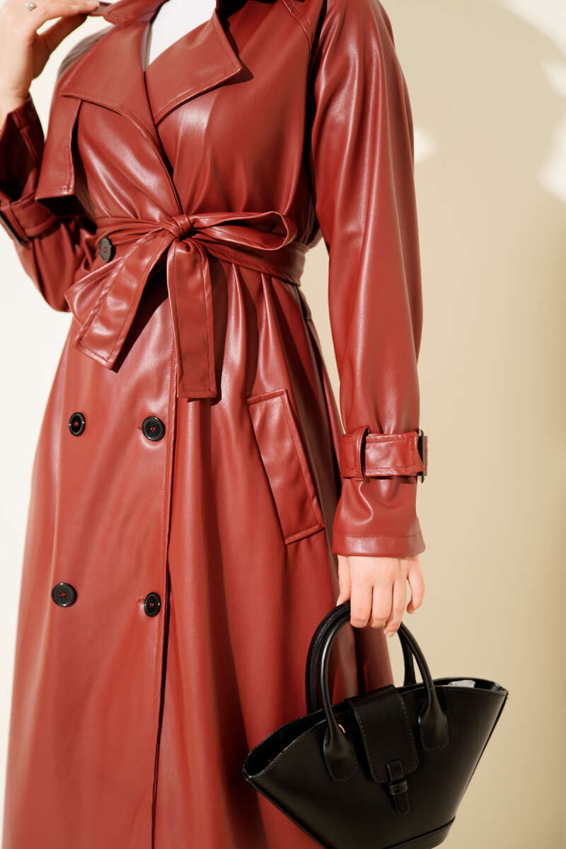 Tek Omuz Apoletli Düğmeli Trençkot Bordo