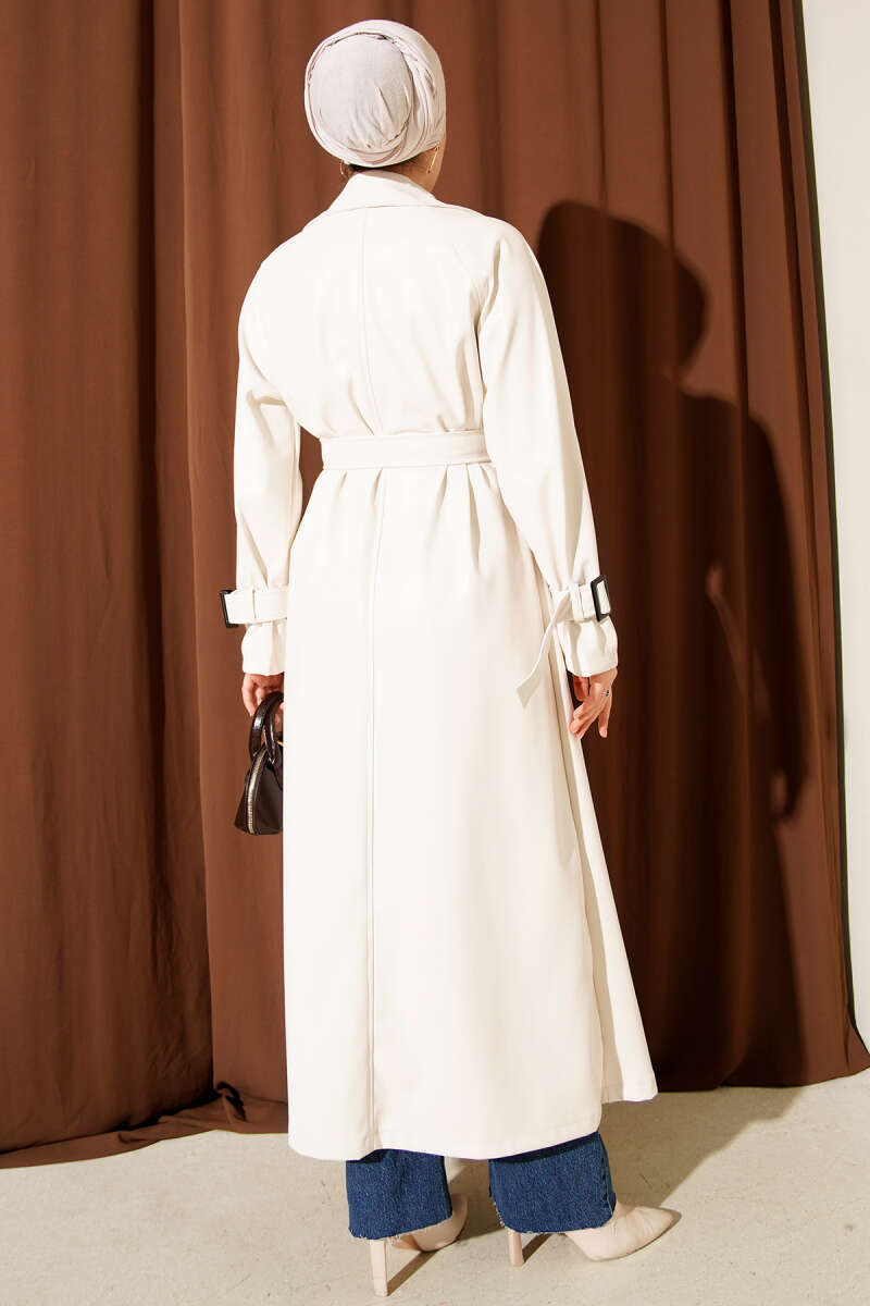 Tek Omuz Apoletli Düğmeli Trençkot Bej
