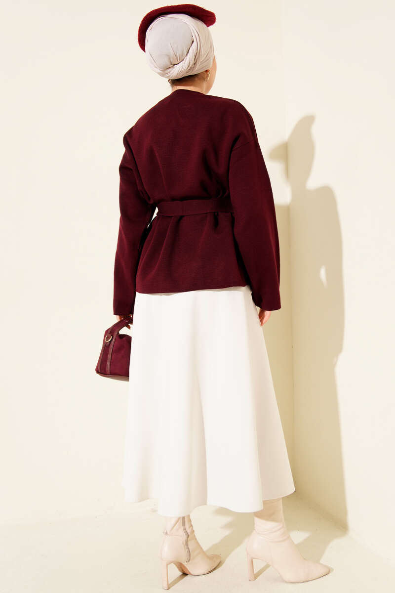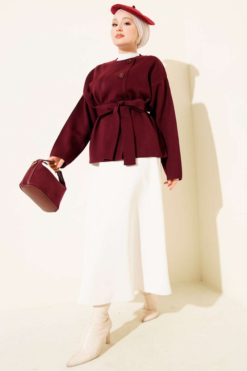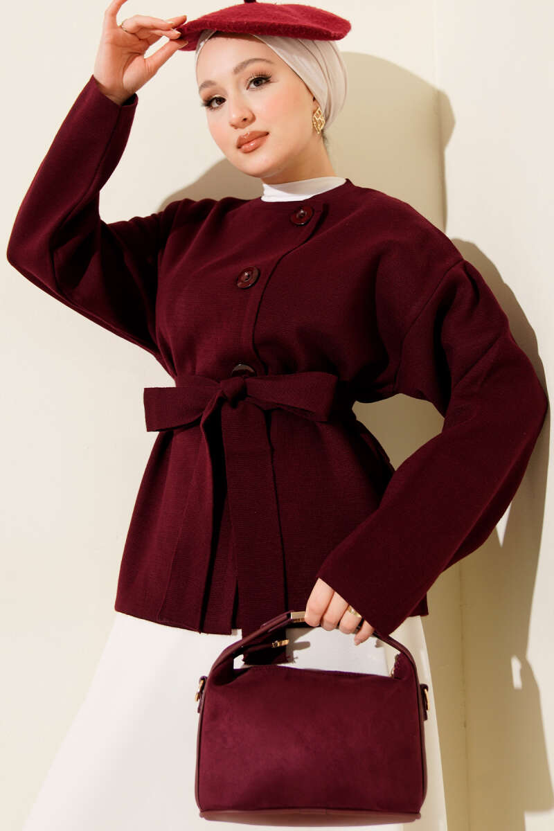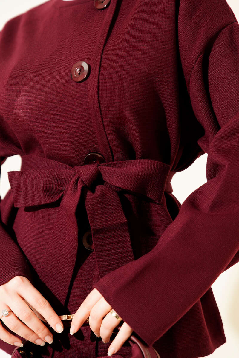 Cepli Gold Düğmeli Triko Hırka Bordo