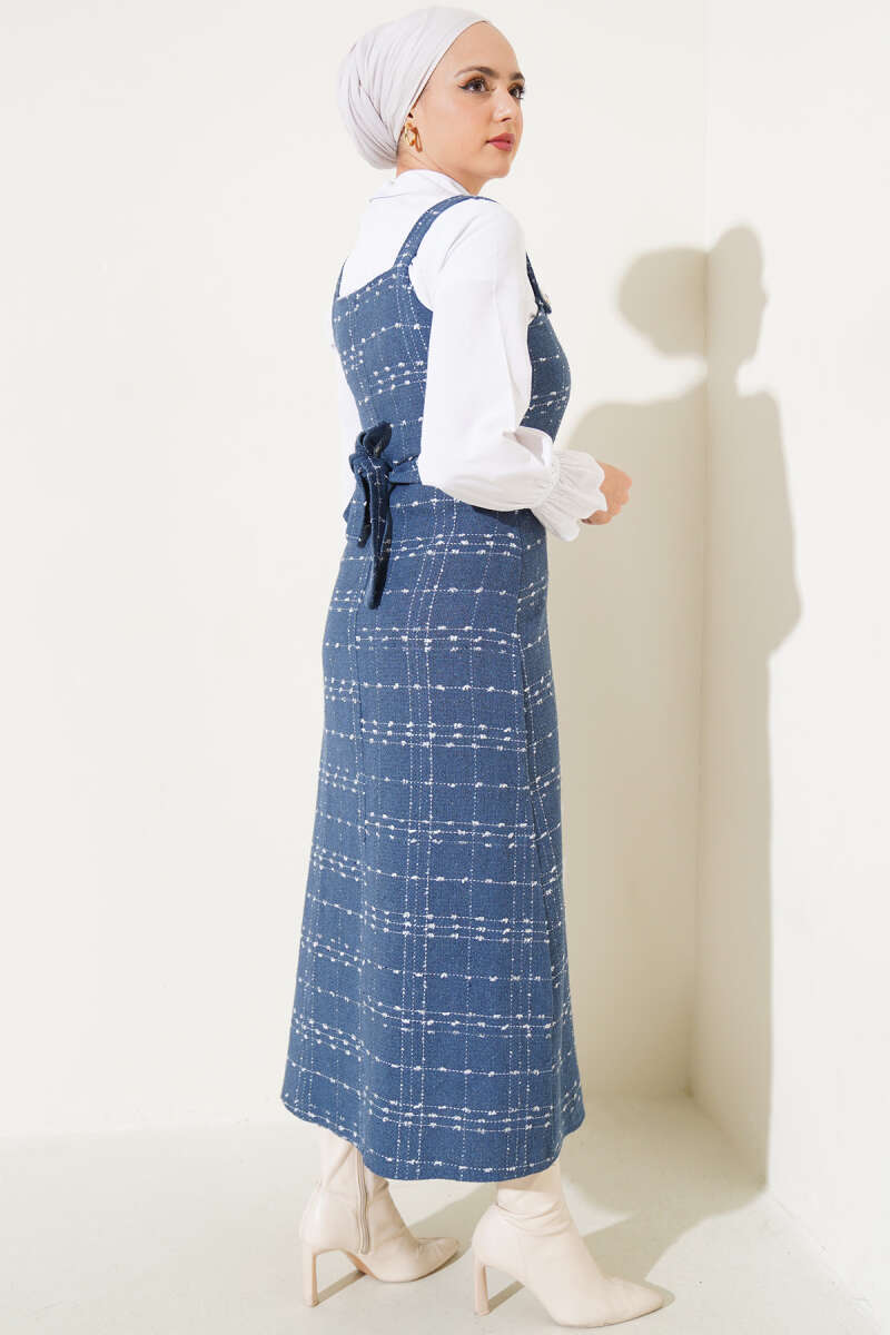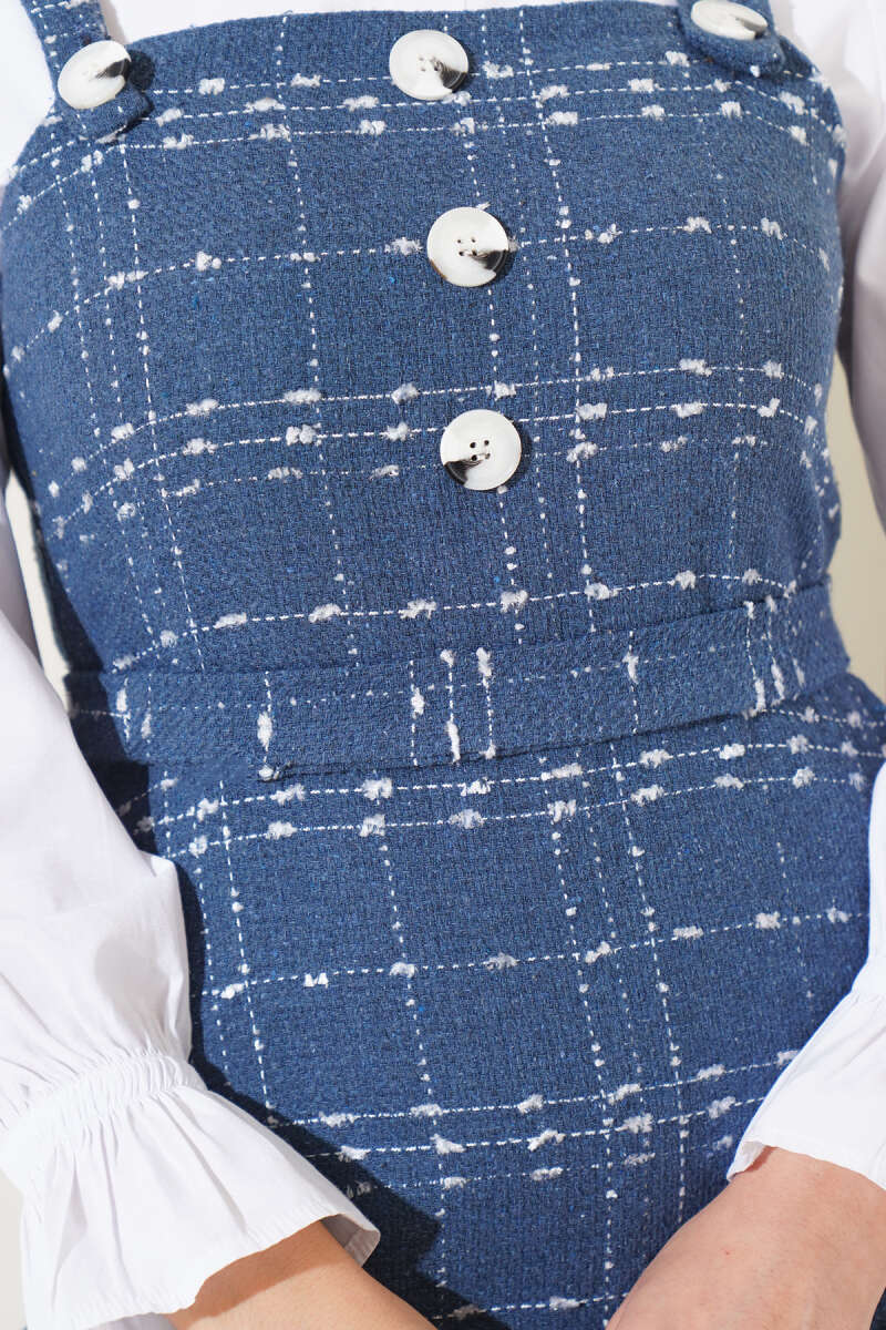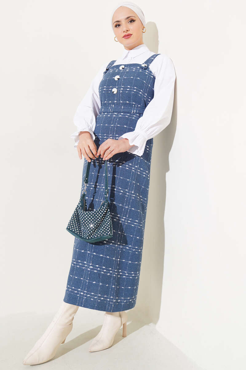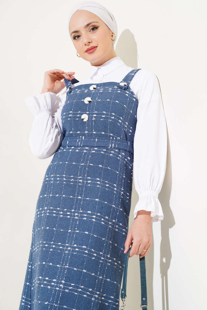 Düğmeli Kuşaklı Tüvit Jile Elbise İndigo