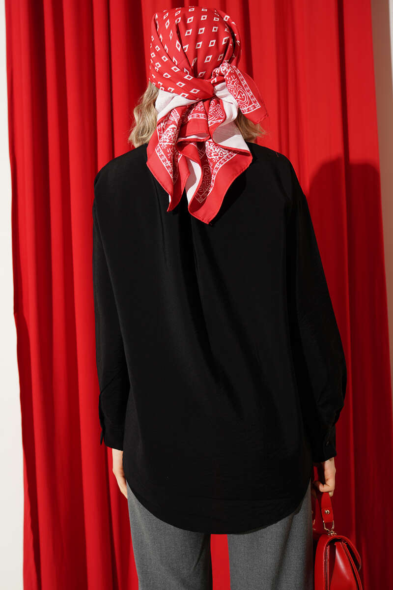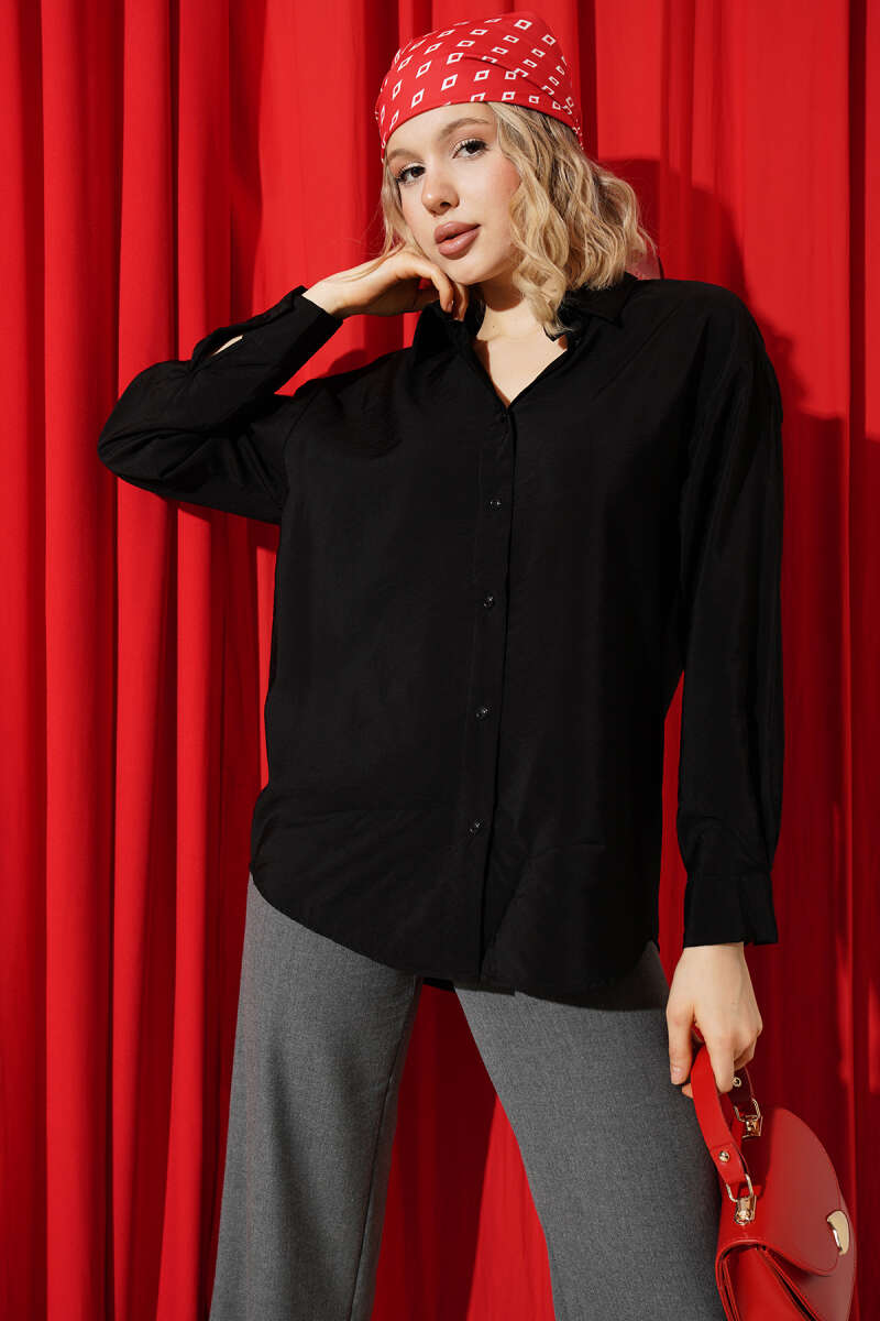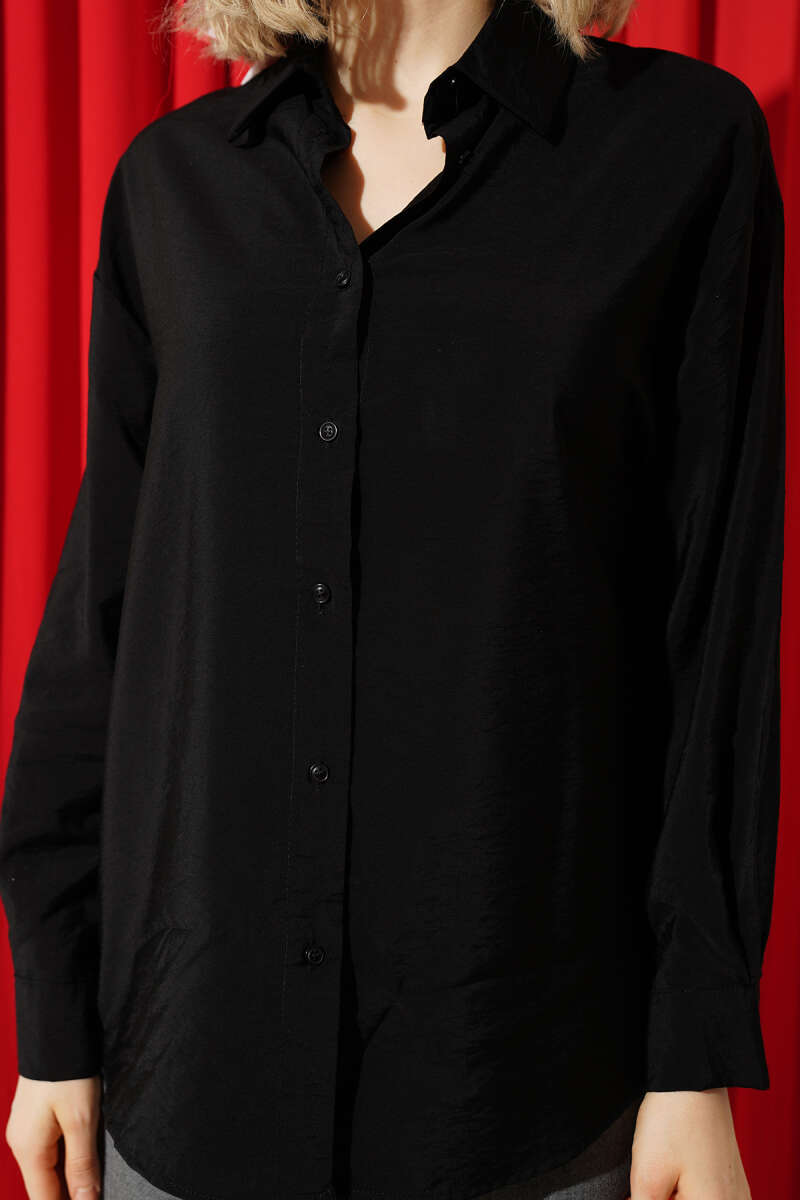 Düğmeli Oversize Gömlek Siyah