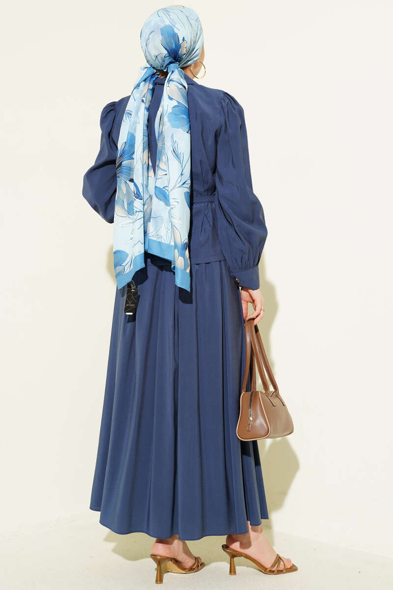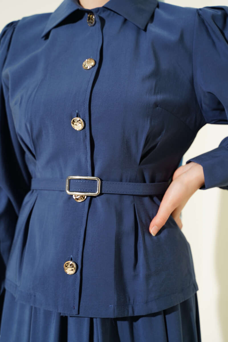 Düğmeli Pens Detaylı Modal Etekli Takım Lacivert