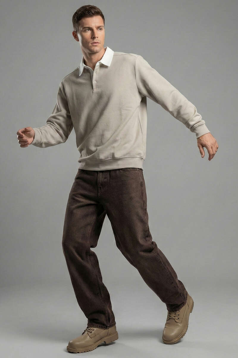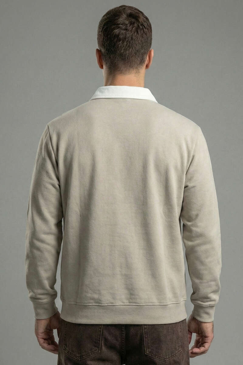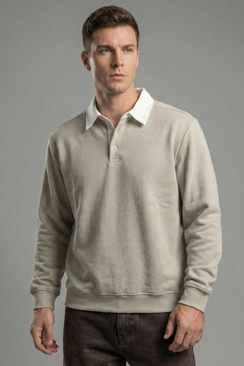 Düğmeli Polo Yaka Erkek Sweatshirt Gri