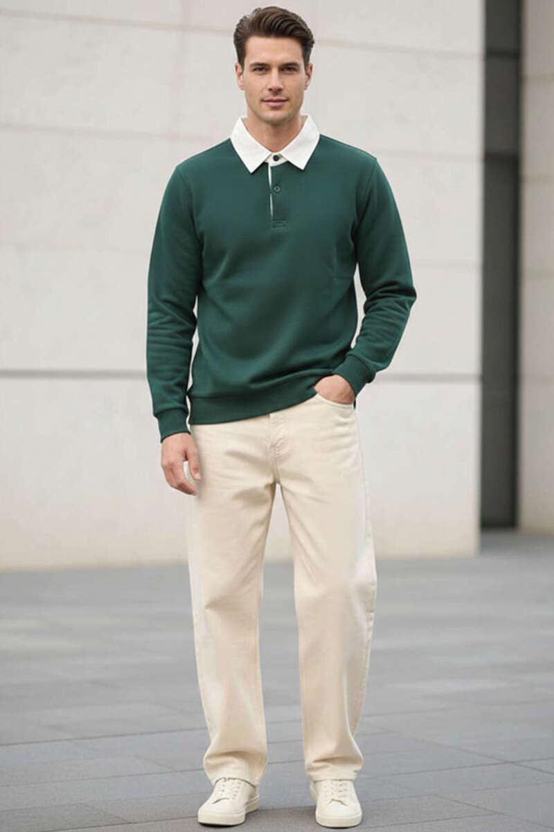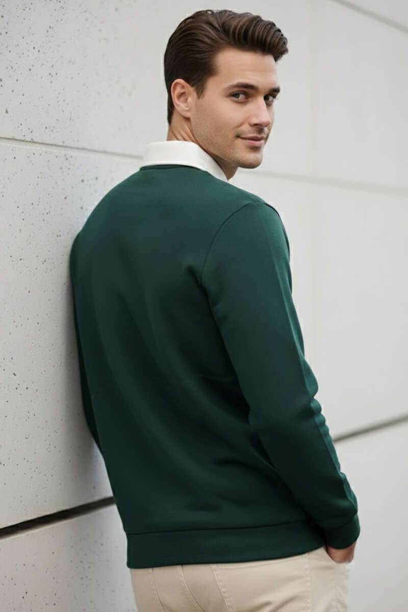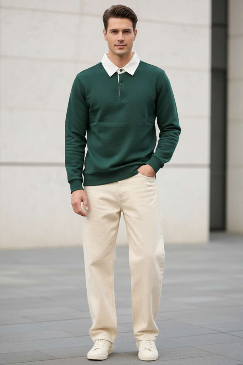 Düğmeli Polo Yaka Erkek Sweatshirt Nefti