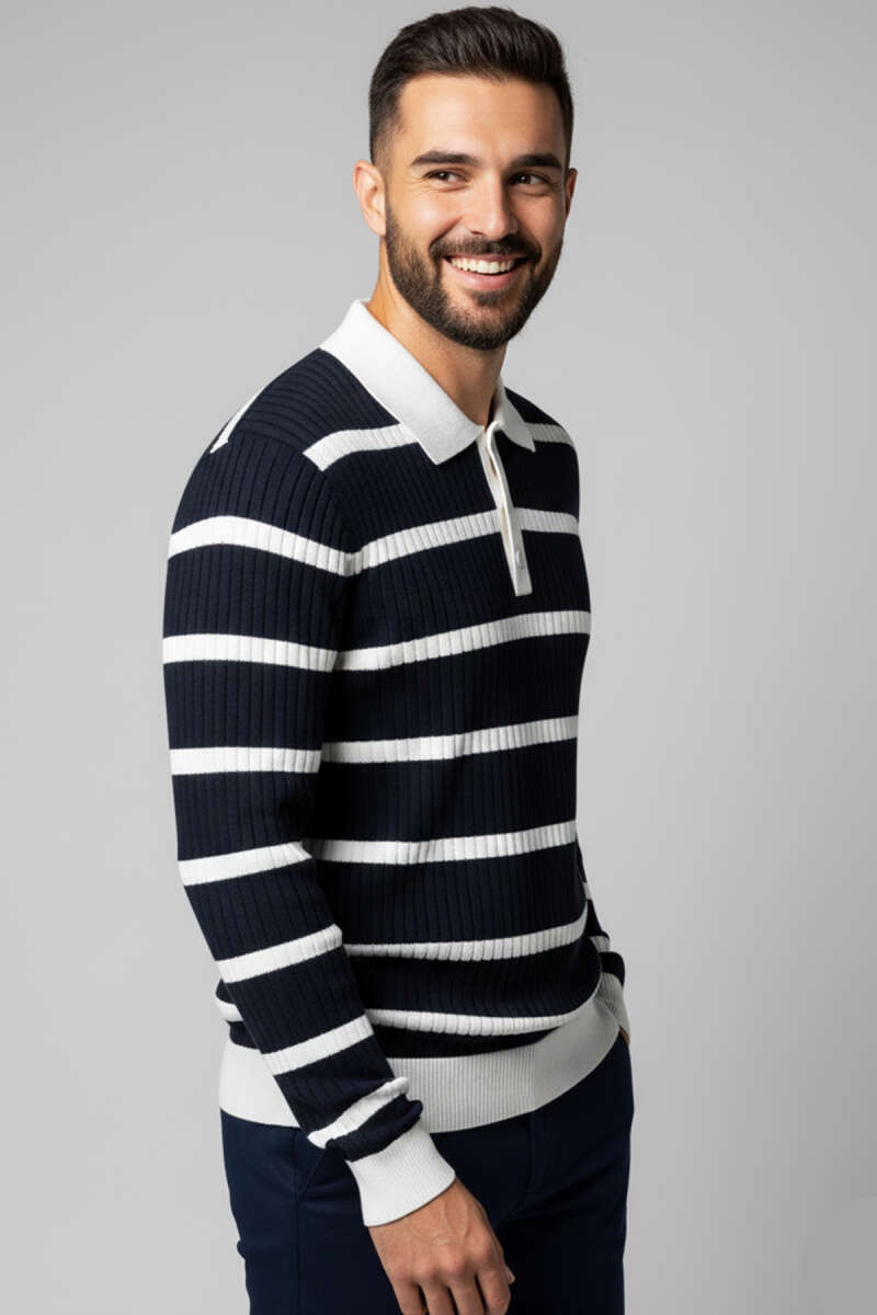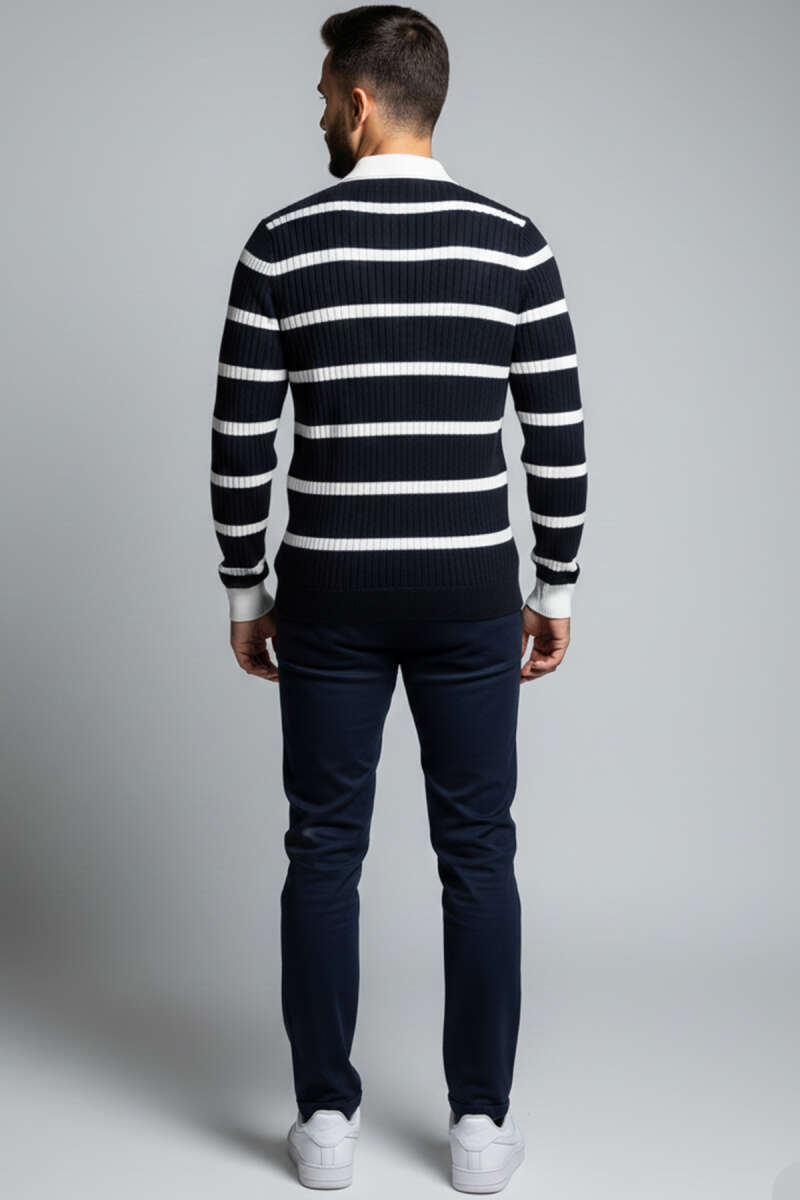 Dikey Çizgi Fitilli Erkek Triko Kazak Siyah