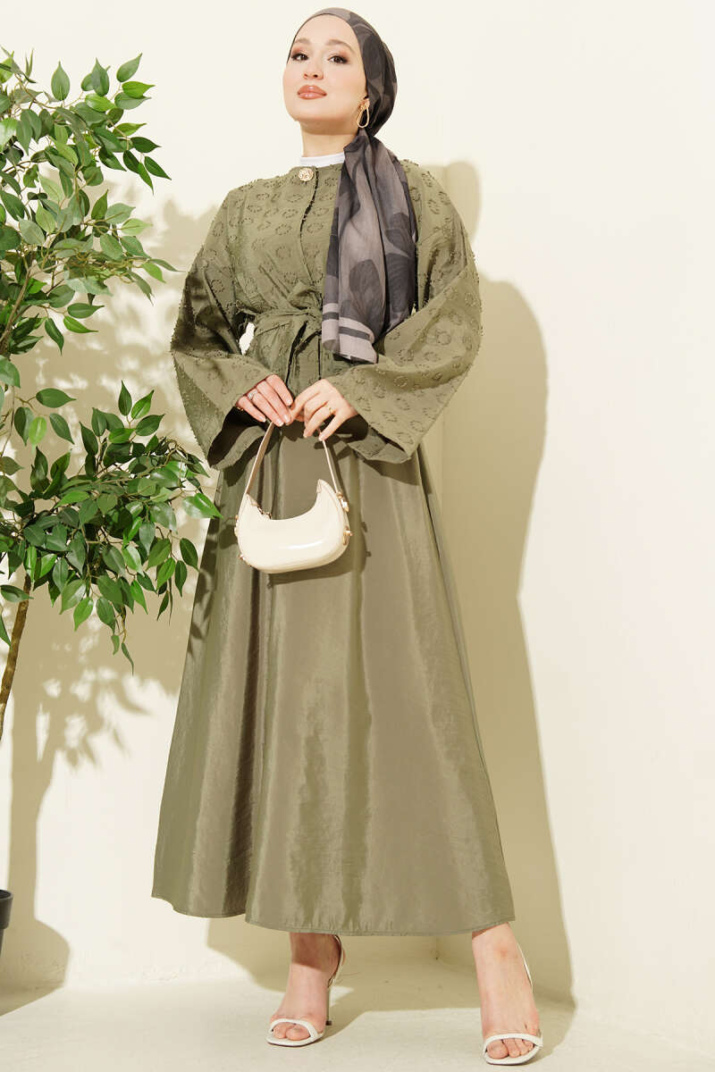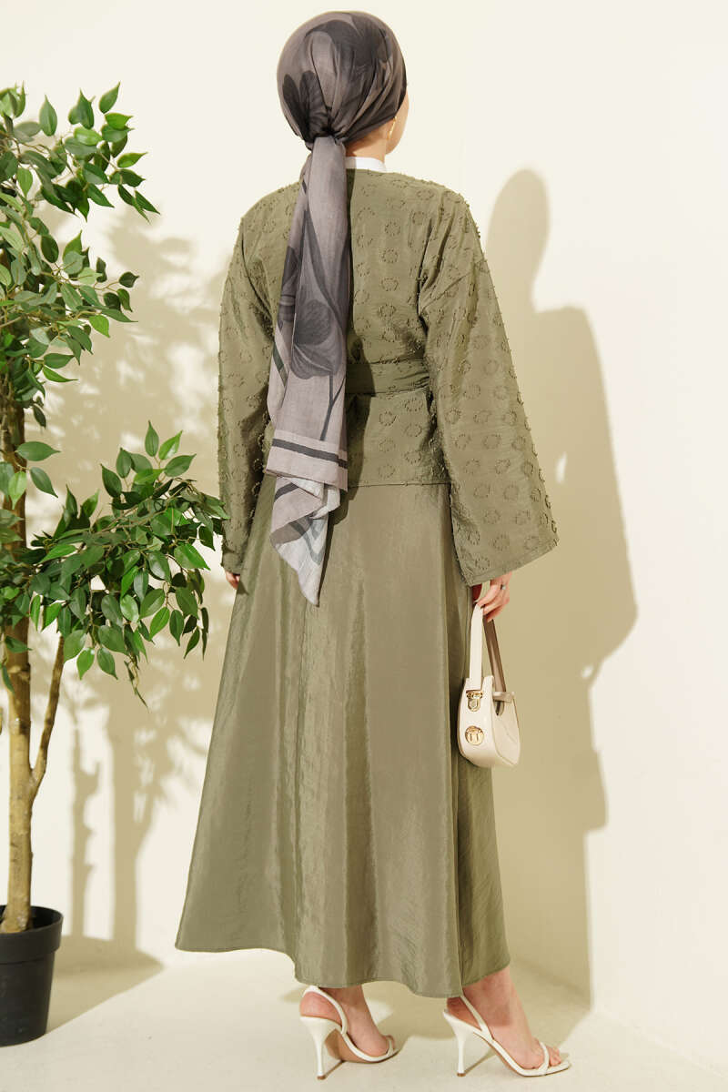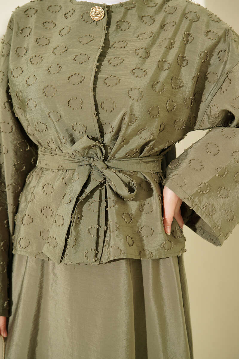 Düğmeli Püskül Detaylı Etekli Takım Haki