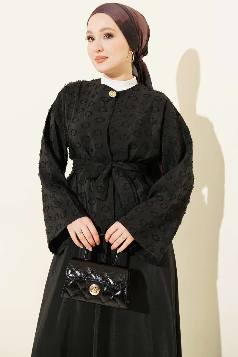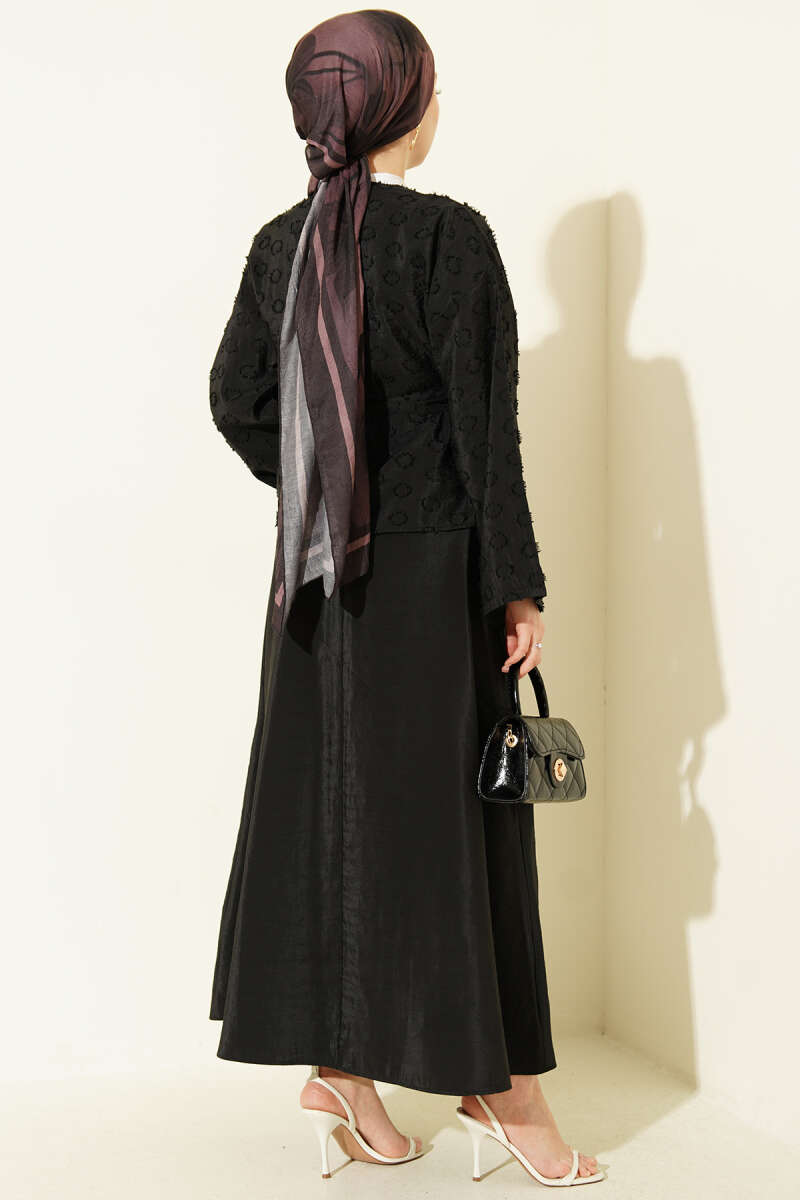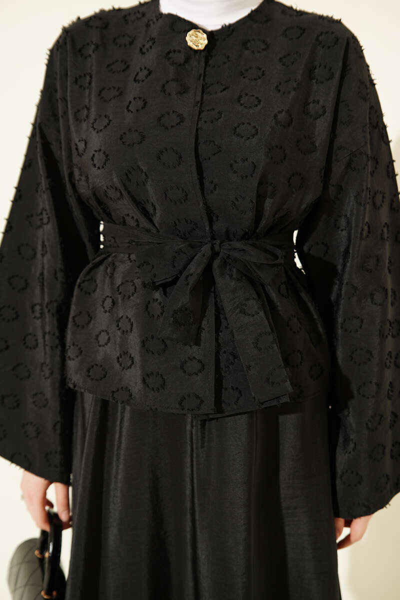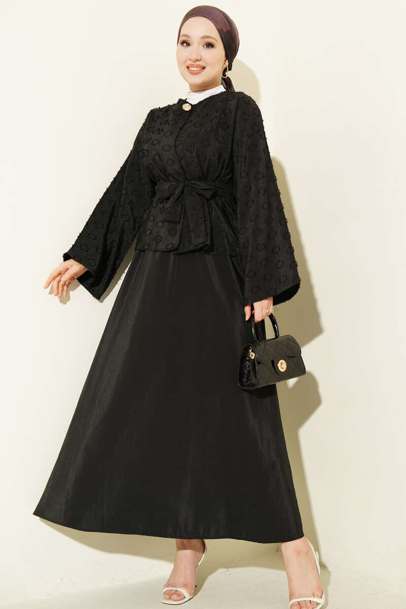 Düğmeli Püskül Detaylı Etekli Takım Siyah