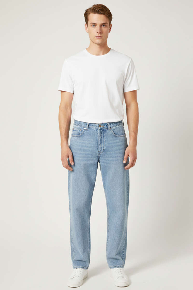 Düğmeli Regular Erkek Kot Pantolon Açık Mavi