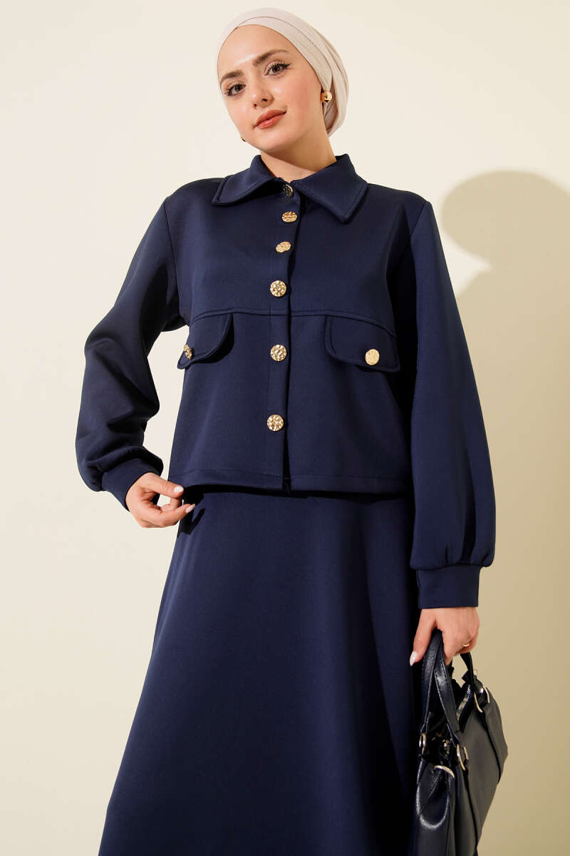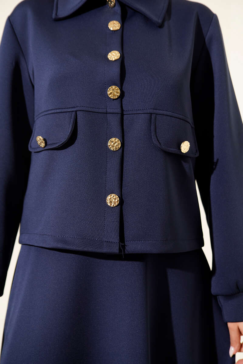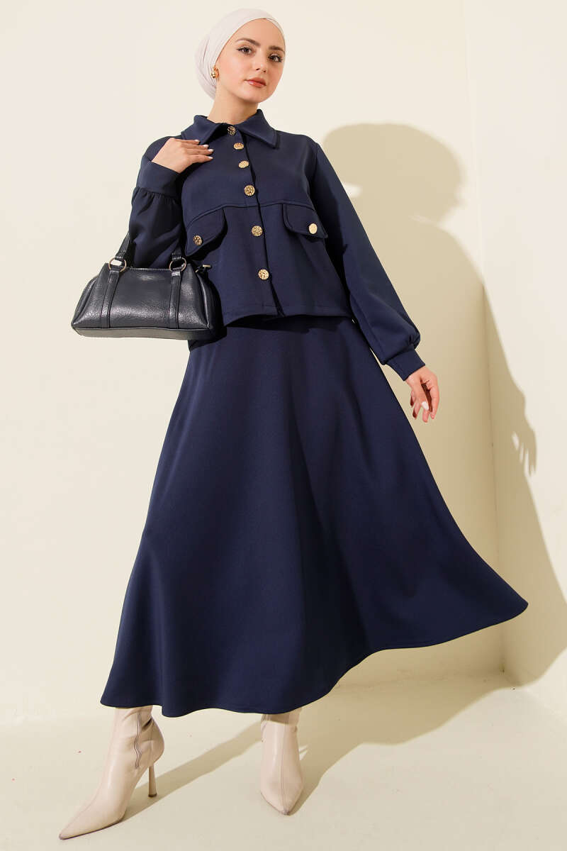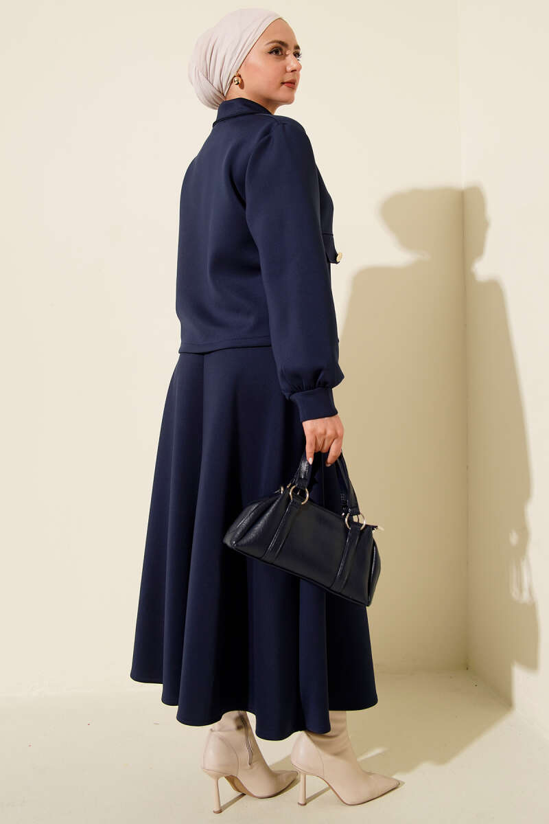Düğmeli Sahte Cepli Scuba Etekli İkili Takım Siyah