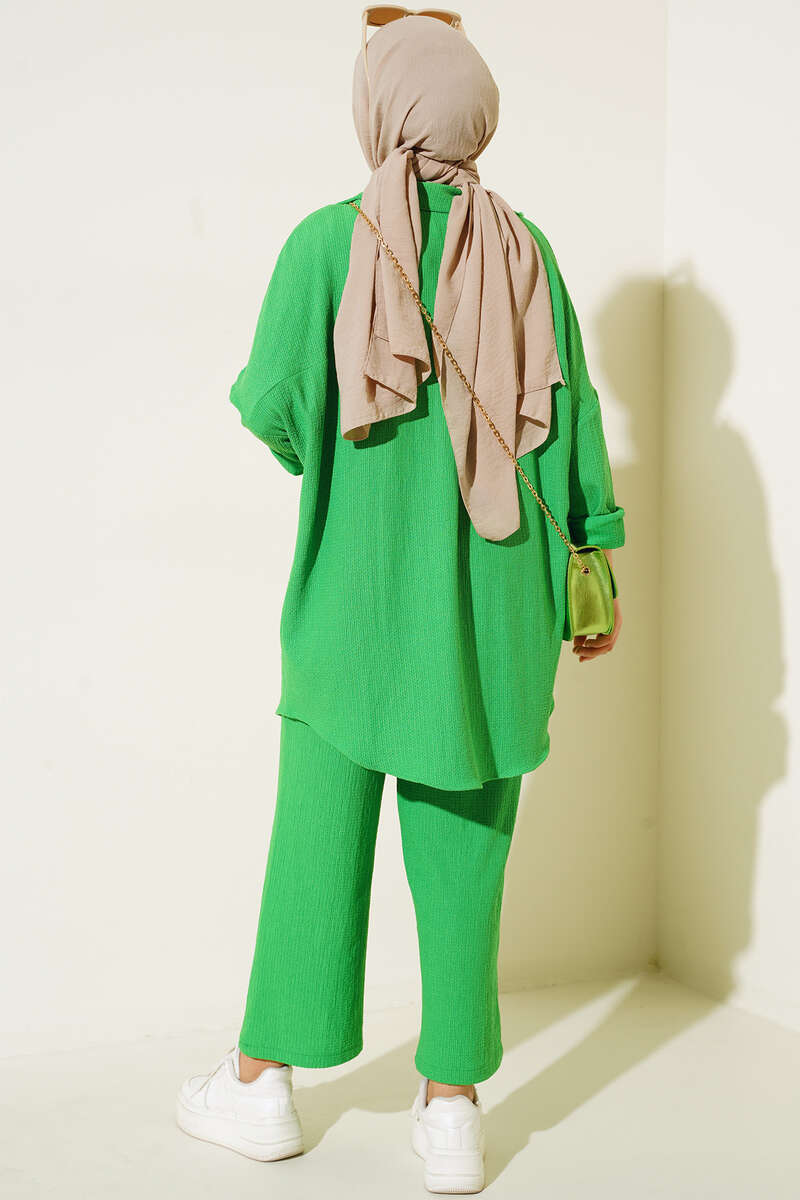 Yeni sezon tunik pantolon takımımız bu yazın favori modellerindendir. Tuniğimizin önü düğmelidir. Arkası uzun olan tuniğimiz salaş tarzıyla dikkat çekmektedir. Pantolonumuzun beli lastiklidir. Renk seçenekleri mevcuttur.