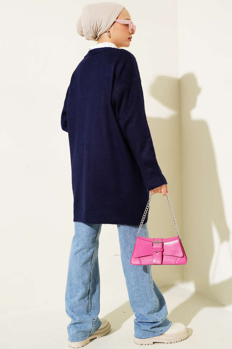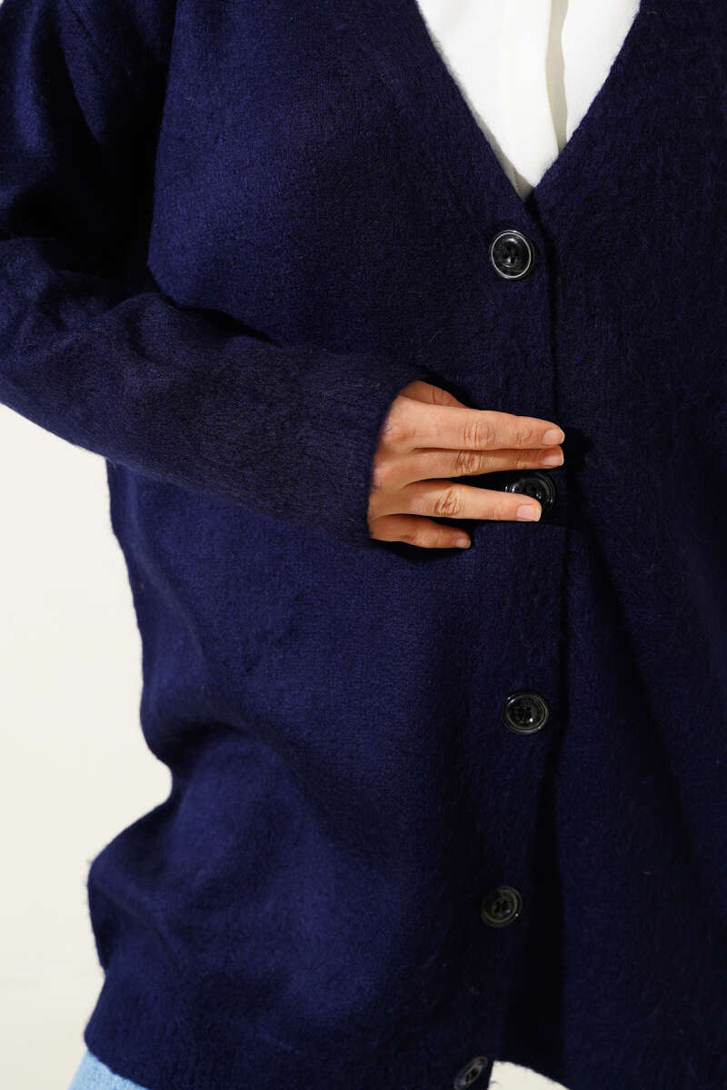 Düğmeli Salaş Yumoş Triko Hırka Lacivert