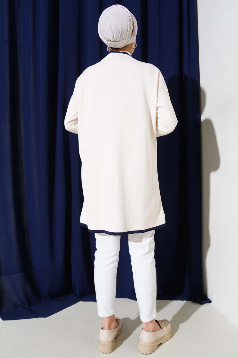 Basic Çift Cepli Uzun Triko Hırka Ekru
