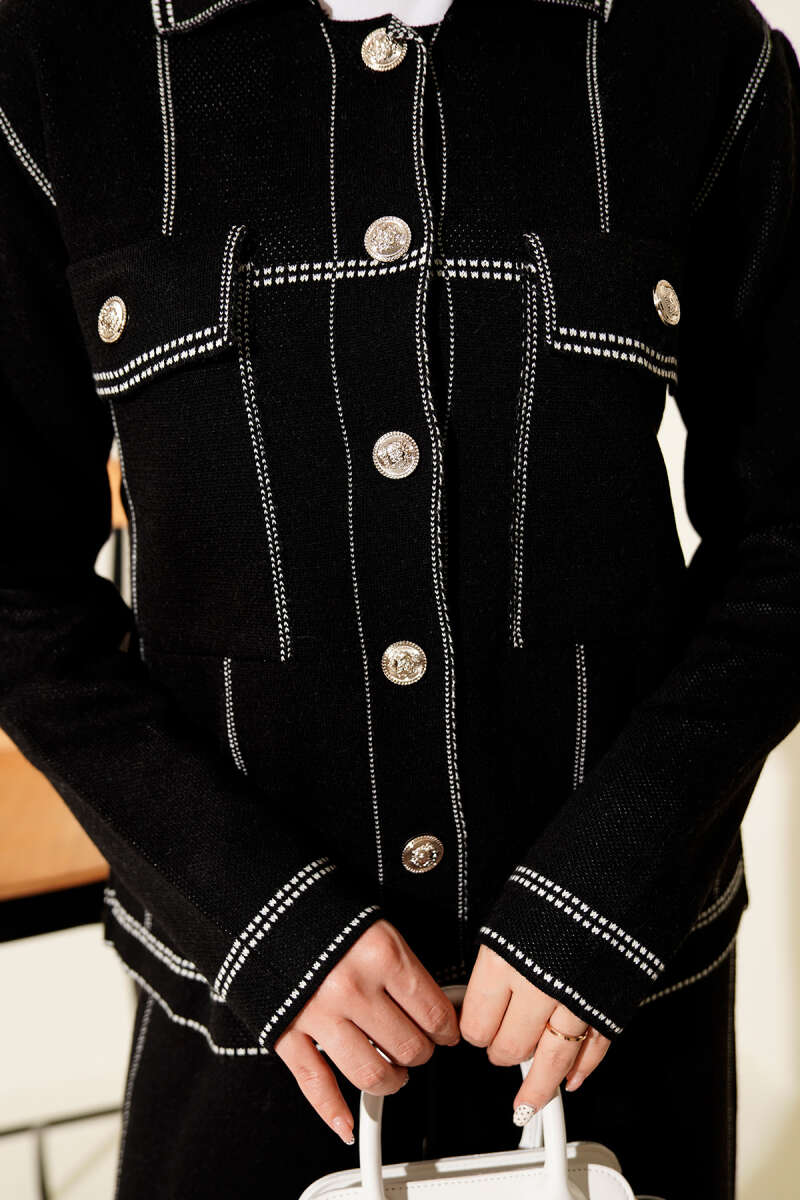 Zikzak Desenli Gold Düğmeli Triko Hırka Siyah