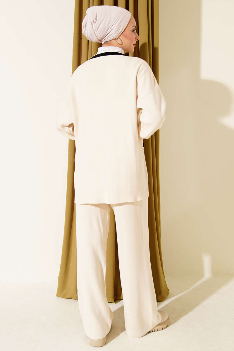 Düğmeli Şeritli Hırkalı Triko İkili Takım Lacivert