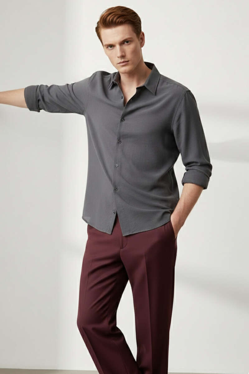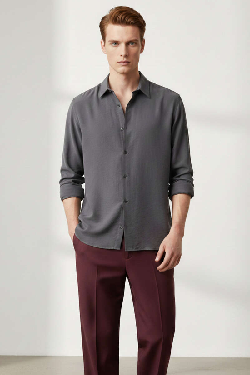 Düğmeli Tensel Erkek Gömlek Antrasit