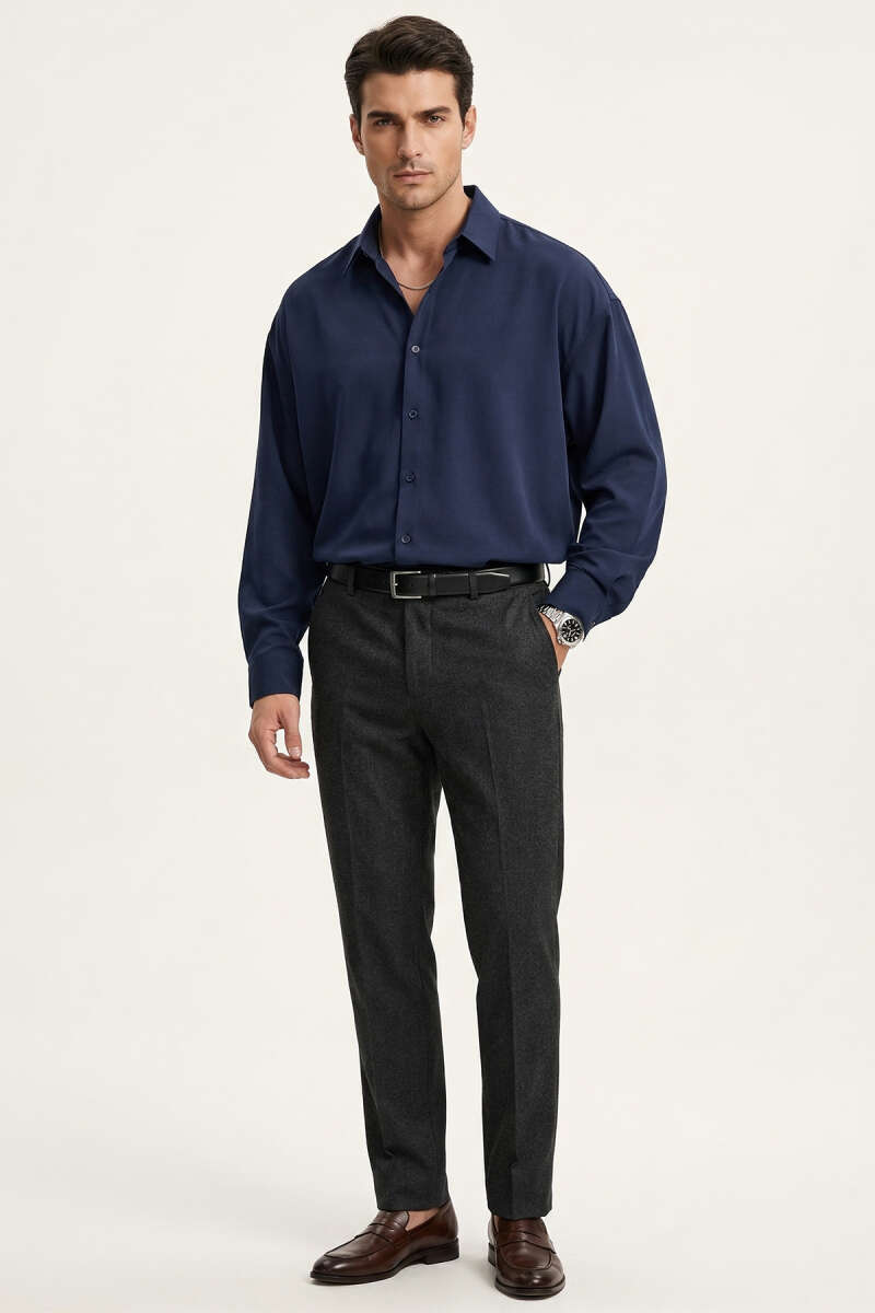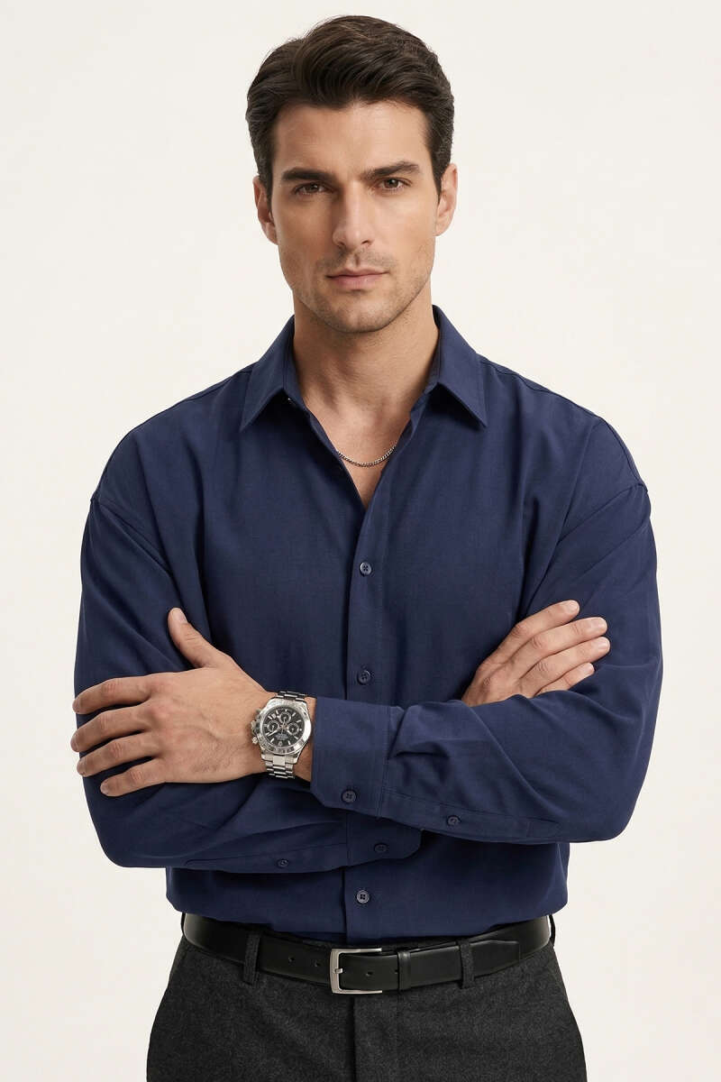 Düğmeli Tensel Erkek Gömlek Lacivert