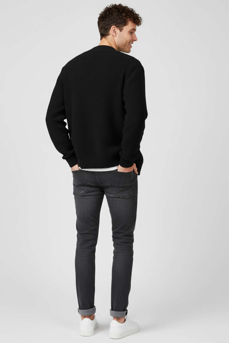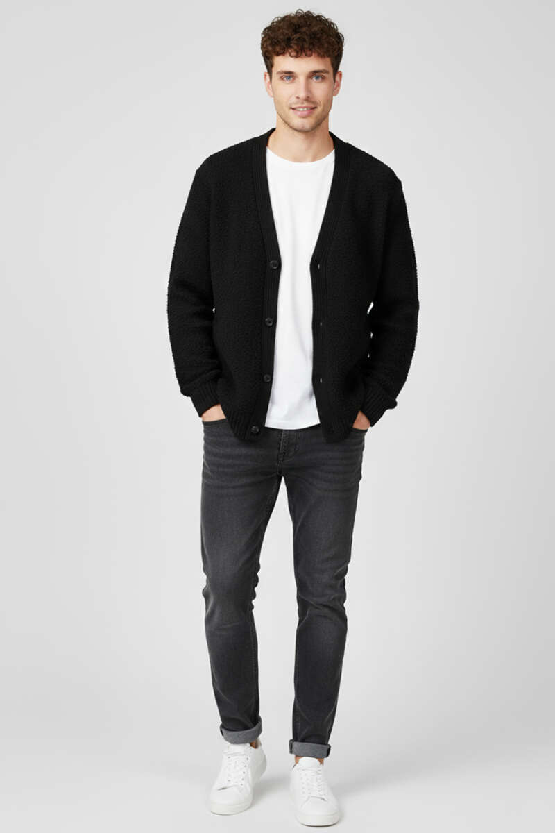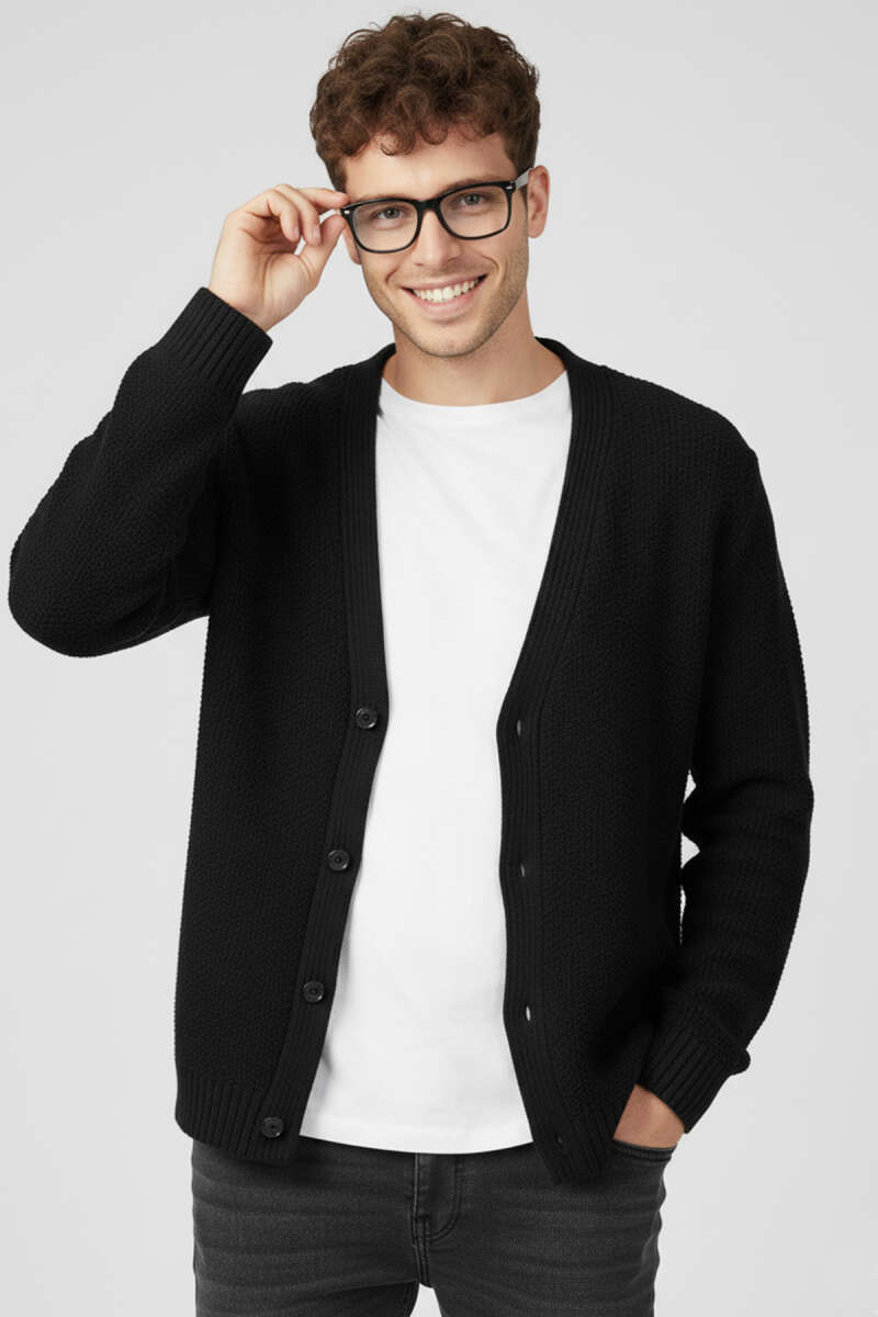 Selanik Örgü Düğmeli Erkek Triko Hırka Siyah