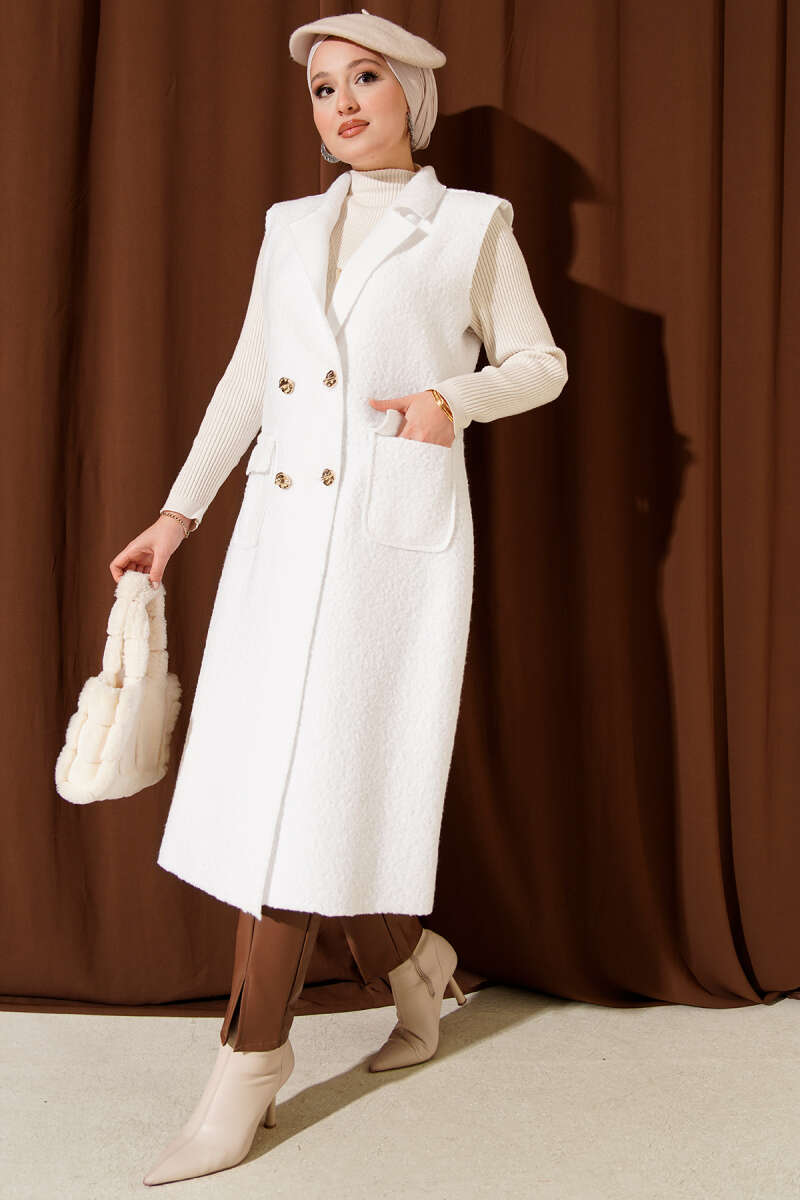 Püskül Detaylı Cep Kapaklı Kot Yelek Kot Mavisi