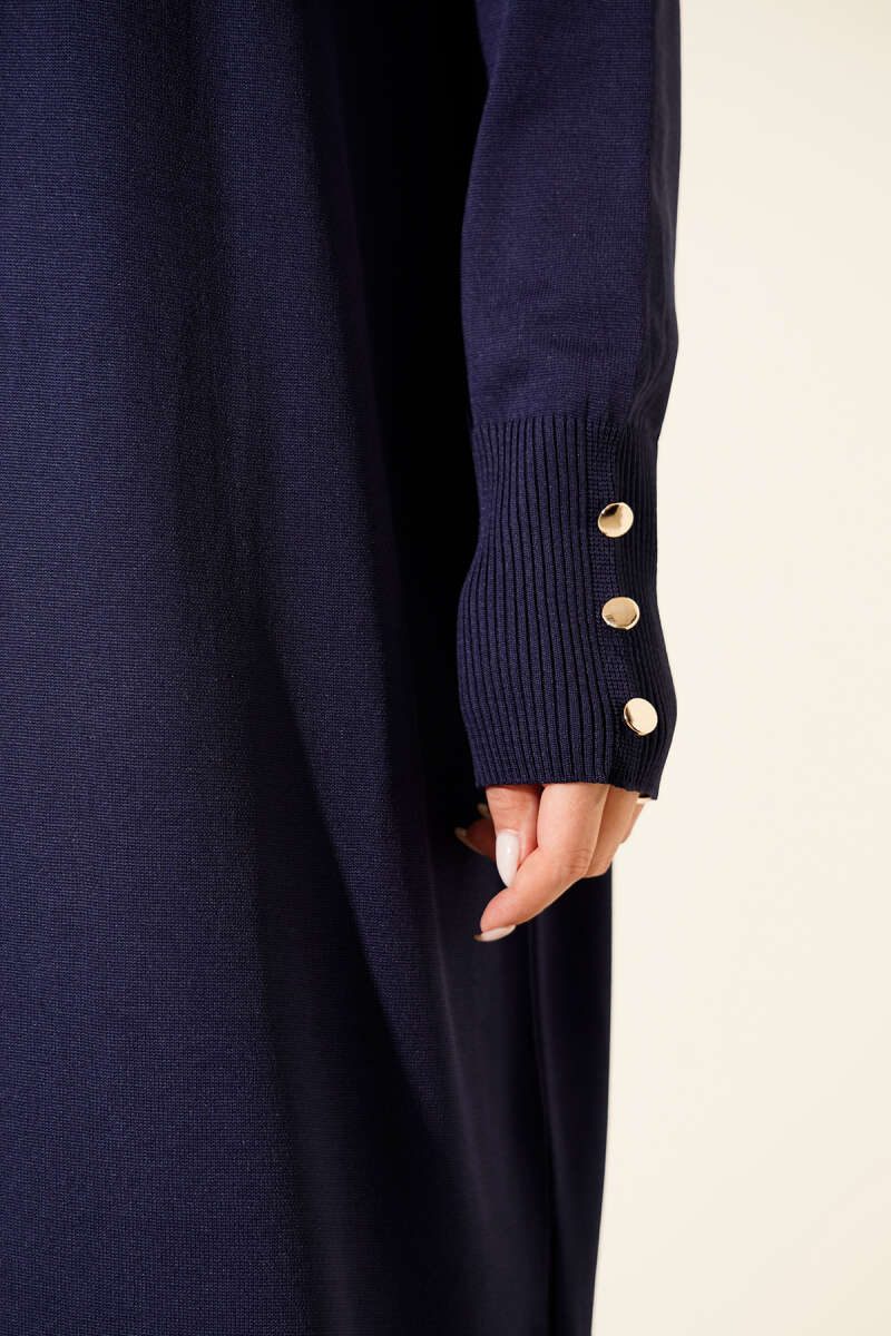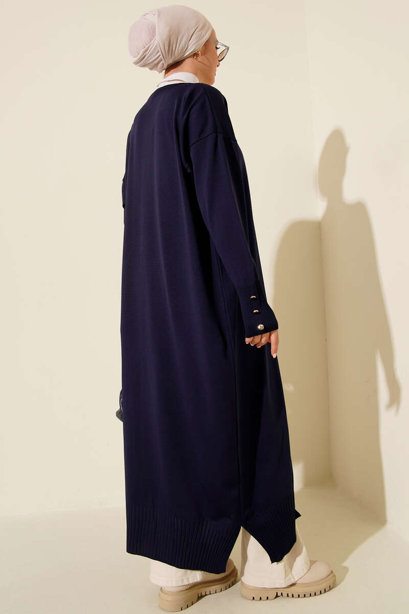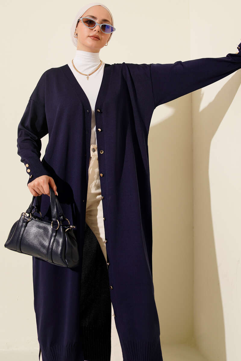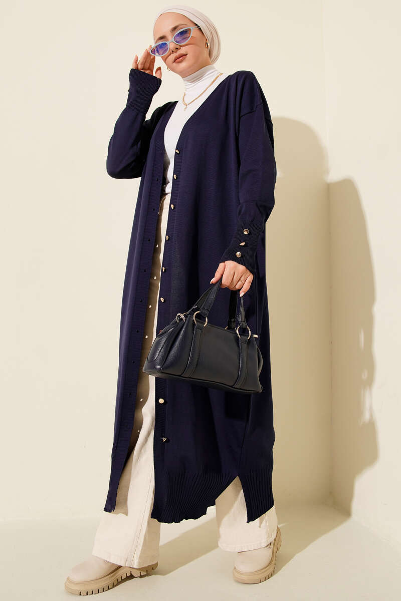 Düğmeli Uzun Merserize Hırka Lacivert