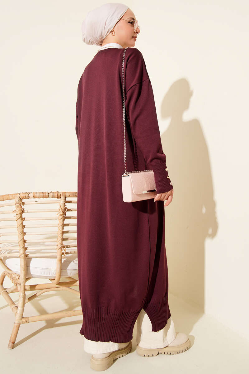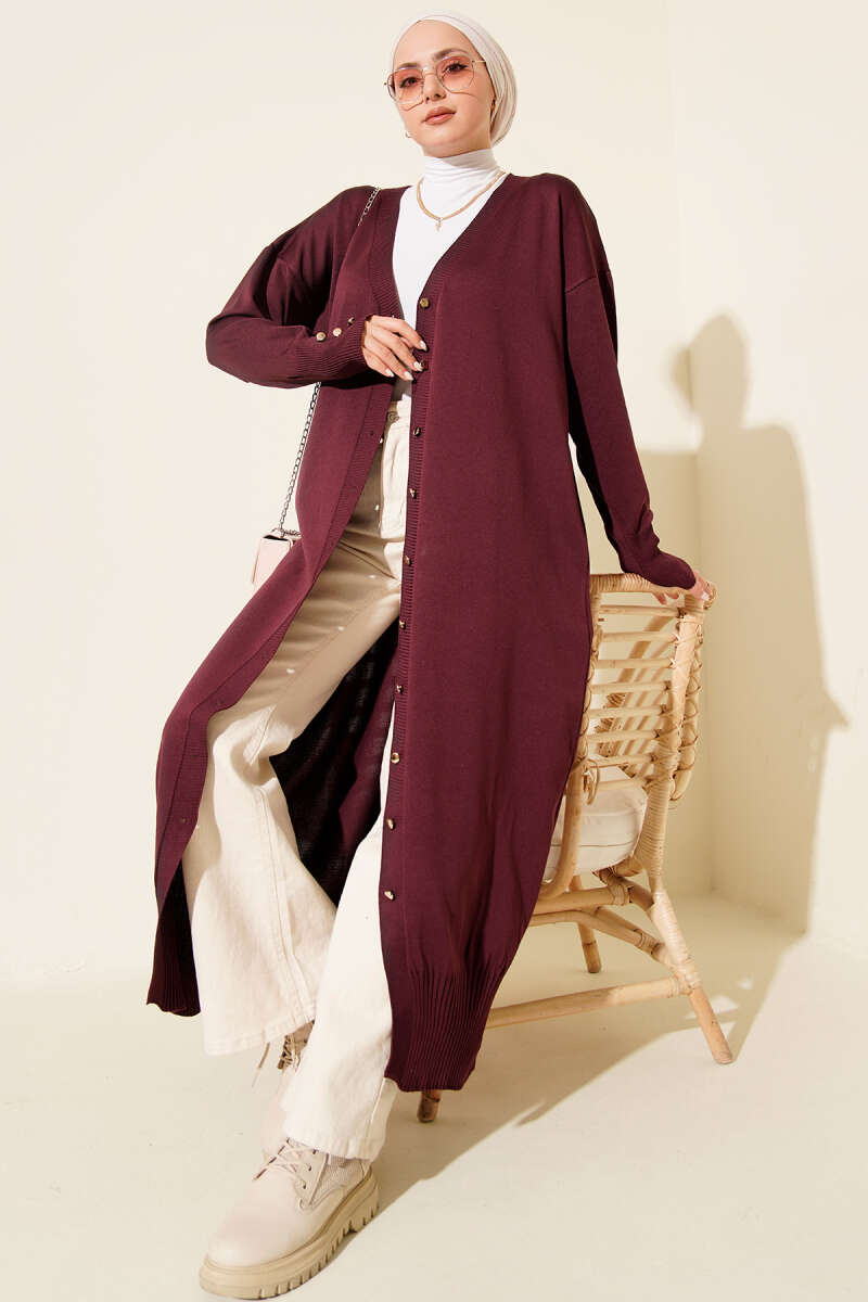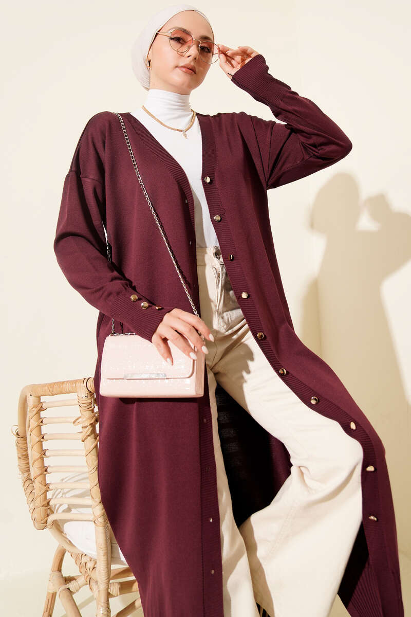 Düğmeli Uzun Merserize Hırka Kahve