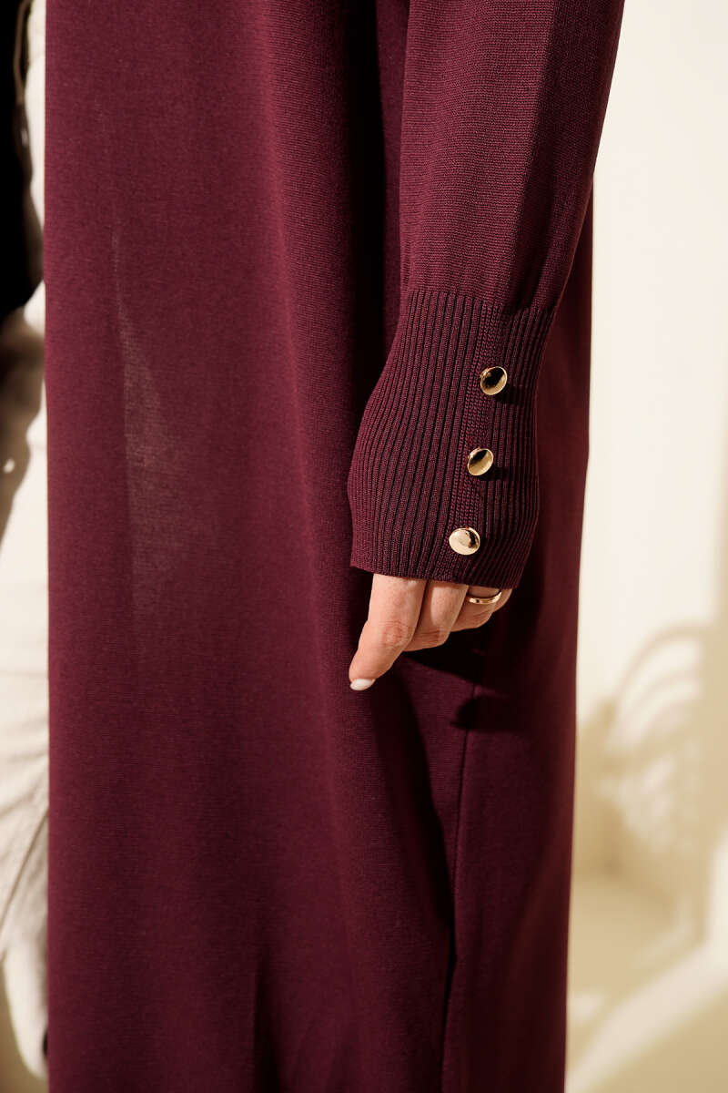 Zikzak Desenli Gold Düğmeli Triko Hırka Bordo